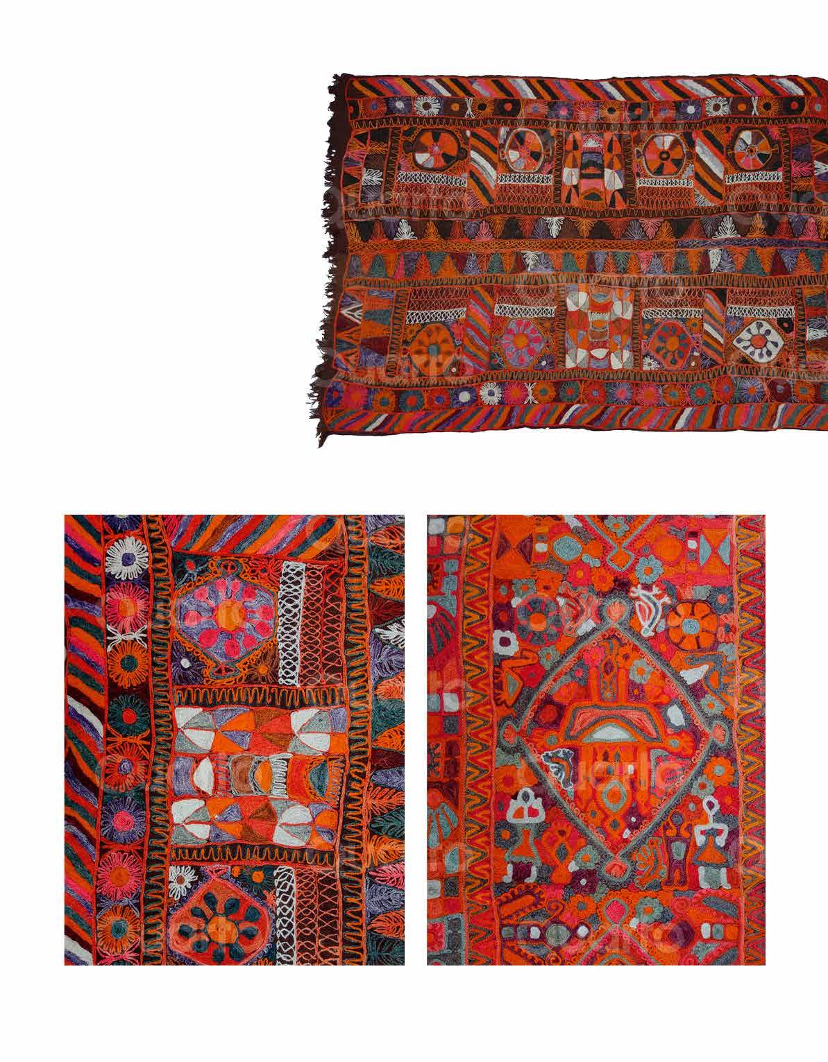 RECHTS Handgesponnen, geweven en geborduurde Arabische deken uit ZuidIrak, daterend van halverwege de twintigste eeuw.