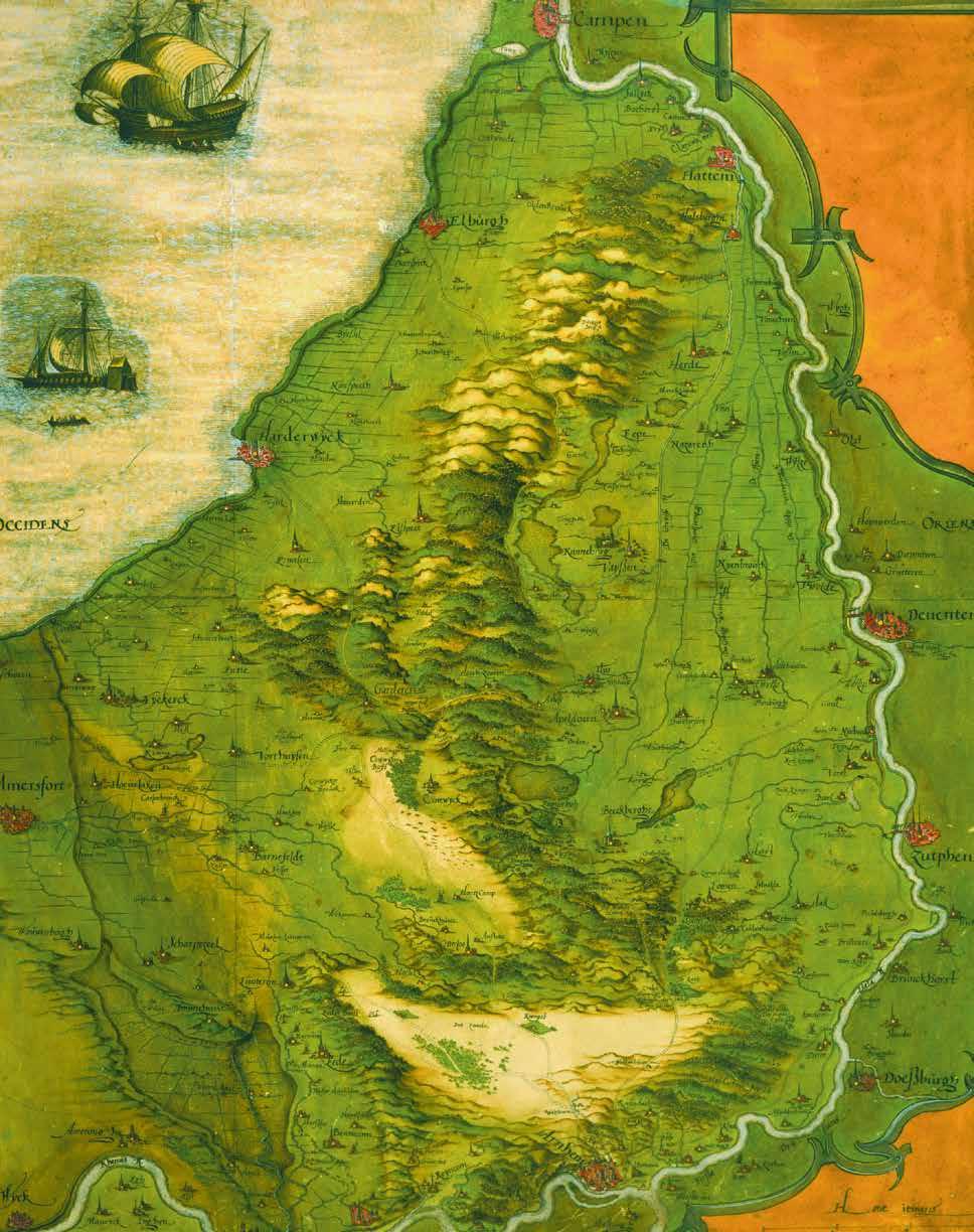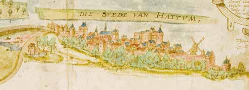 ‘Die Stede van Hattum’, deel van een grote kaart van de grens tussen Gelre en Oversticht. Hattem is de noordelijkste stad op de Veluwe. Thomas Witteroos, schaal circa 1:4000 Kaart uit 1570