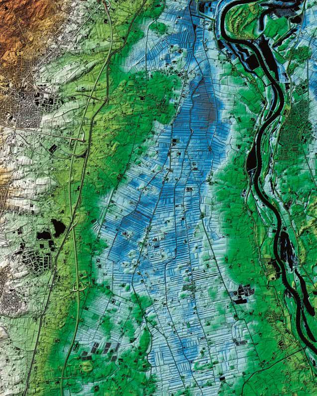 De grote meander van de IJssel stroomt rond Fortmont (rechtsboven). De blauwe kleur is een indicatie van de laagte, met als diepste plek 2 meter +NAP, naast Oene dat met ruim 5 meter +NAP op een hoger deel in de IJsselvallei ligt. De landerijen worden vanouds gevoed met Veluws water, wat de vruchtbaarheid van de bodem ten goede komt. Weteringen voeren het water verder naar het noorden af. Links beneden een deel van Vaassen, erboven Epe. Op de hogere delen is het Apeldoorns Kanaal gegraven; de A50 volgt grotendeels dat traject. Michael van der Valk. Hoogtekaart 2024