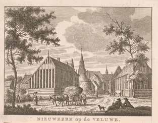 Blik op het centrum van Nijkerk met enkele hoge tabaksschuren; op de achtergrond de karakteristieke kerktoren. Begin achttiende eeuw komt ruim 40 procent van de inlandse tabak uit deze omgeving. Carel Frederik Bendorp, naar een tekening van Jan Bulthuis Prent uit 1784.