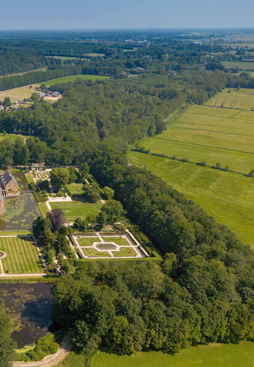 Het oostelijk deel van de Veluwezoom met Kasteel Middachten bij De Steeg; de blik is noordwaarts richting Dieren. Het landgoed werd ruim 800 jaar geleden gesticht op een strategische plek bij de IJssel, in moerassig gebied. Links de Middachterbossen, verderop ligt de Carolineberg. Freddy Schinkel. Foto uit juni 2023