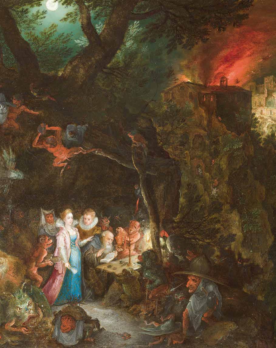 haven is te zien op de achtergronden van schilderijen van Pieter Bruegel de Oude, Jan Brueghel de Oude, David Teniers de Jonge en Jan van Kessel de Oude. Zoals Marlise Rijks in haar essay bespreekt, leidde de combinatie van het lokale Antwerpse netwerk van verzamelaars, handelaars, kunstenaars en ambachtslieden en de invoer van voorheen onbekende dieren, planten, schelpen, boeken en ‘exotische’ voorwerpen tot uiteenlopende collecties en een rijke verzamelcultuur.46 De wisselwerking tussen mondiale handelsnetwerken, lokale verzamelnetwerken, het kolonialisme in Antwerpen en de impact daarvan op de familie Brueghel verdient nadere beschouwing. Aanleiding tot vruchtbare analyse bieden Jan van Kessel de Oudes op koper geschilderde decoratieve schelpfestoenen en groteske figuren [afb. 21], die verwijzen naar de invoer van schelpen uit de Indonesische archipel, Kaap de Goede Hoop, de Antillen en andere Nederlandse koloniale handelsplaatsen naar NoordEuropa, voornamelijk via Amsterdam en de Verenigde Oost­ en West­Indische Compagnieën (VOC en WIC) en Spaanse en Portugese handelaren.47 De invoer van deze voorheen onbekende voorwerpen leverde inspiratie op voor zowel verzamelaars als kunstenaars. Van Kessels groteske slingers en gezichten gemaakt van schelpen