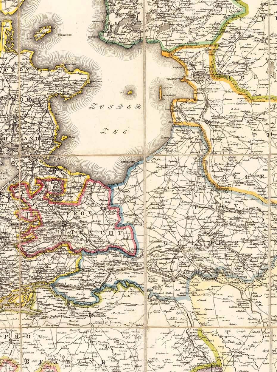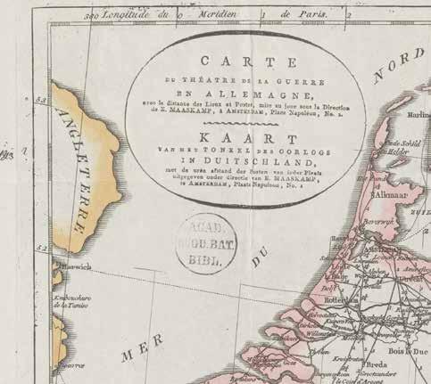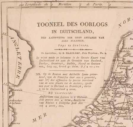 Evert Maaskamp paste zijn koperplaten veelvuldig aan en hergebruikte kaarten voor verschillende doeleinden. Wellicht het bekendste voorbeeld daarvan is de reeks van vier provinciekaarten van de overstromingen van 1825. Hiervoor voegde hij aan de eerder in de Atlas portatif du Royaume des Pays-Bas (1821)1 verschenen provinciekaarten van Groningen, Friesland, Overijssel en Noord-Holland een tweede titel toe, en kleurde hij met de hand de overstroomde gebieden blauw in.2 Het provinciekaartje van Brabant uit diezelfde atlas werd later hergebruikt om de Tiendaagse Veldtocht (1832)3 in beeld te brengen. In veel gevallen was de uitgever genoodzaakt tot dergelijke ingrepen, omdat de politieke kaarten van de Nederlanden én Europa in de periode dat hij kaarten uitgaf continue bleven veranderen. In deze bijdrage wordt ingegaan op vier minder bekende kaarten die in verschillende verschijningsvormen door Maaskamp zijn uitgegeven. Door het afdekken van titels en hergebruiken van gedeeltes van eerder uitgegeven kaarten, maakte Maaskamp zijn koperplaten multifunctioneel.