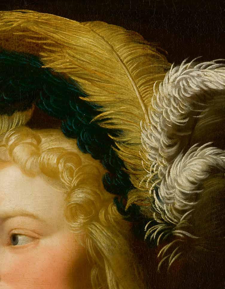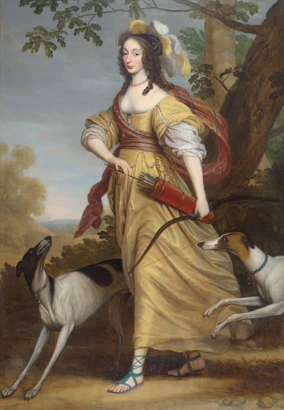 Van de vier meisjes die bij Honthorst in de leer waren, is alleen van Louise Hollandine een aantal schilderijen bewaard gebleven.68 Honthorst portretteerde haar in 1643 op 21-jarige leeftijd als Diana, de godin van de jacht (afb. 203).69 In haar linkerhand heeft zij een boog en met haar rechter trekt zij een pijl uit de pijlkoker. Twee hazewindhonden springen tegen haar op. Haar donkere ogen, het lange, donkere, krullende haar, de veren die erop zijn bevestigd en haar glanzende goudgele jurk maken haar tot een ravissante verschijning. Op 16 december 1657 verliet zij op 35-jarige leeftijd Den Haag om naar Parijs te gaan, waar haar broer Eduard met zijn vrouw woonde die zich eerder tot het katholicisme bekeerden. Op 25 januari 1658 werd zij tot de Rooms-Katholieke Kerk toegelaten, en in 1659 werd zij novice van de abdij Maubuission bij Pontoise. Een jaar later legde zij haar gelofte af en in 1664 werd zij benoemd tot abdis. Tot aan haar overlijden op 11 februari 1709 bleef zij schilderen. Er zijn 25 schilderijen van haar hand bewaard gebleven en er worden er 30 aan haar toegeschreven waarvan de verblijfplaats onbekend is.70 Het zijn meest portretten en schilderijen met religieuze thema’s die in het klooster hingen, of die zij ten geschenke gaf aan familie en vrienden. Sir Robert Anstruther (1578-1645), diplomaat aan het Engelse hof, nam twee van haar schilderijen voor haar oom Karel I mee naar Engeland: een valkenier ten voeten uit in een landschap met een witte hond en een landschap met Tobias en de engel.71