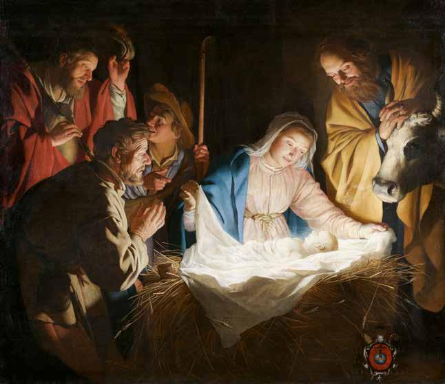 aanpassen in verband met de locatie waar het zou komen te hangen, in een bestaande betimmering bijvoorbeeld. Dat ondersteunt de hypothese dat dit specifieke schilderij identiek is met het stuk dat in 1632-33 in de inventaris van Paleis Noordeinde wordt genoemd: ‘Op het cabinet van Zijn Excellentie. Een schoorsteenmantel, vergult met biesen, den gront groen gelijck mede de solderinge; daarinne een schilderie, daer de herders Christus comen begroeten, door Honthorst gedaan.’ 41