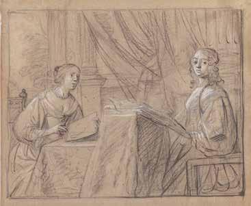 Gerard van Honthorst, De tekenles, ca. 1640 Papier, zwart en rood krijt, pen en zwarte inkt, gehoogd met witte dekverf, 209◊252 mm Teylers Museum, Haarlem