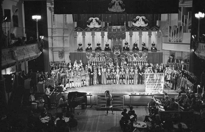 De jaarlijkse pronkzitting van On-Ganse op 8 november 1980. On-Ganse had een aantal privileges: een sleutel van het gebouw en opbergruimte voor de carnavalsrekwisieten. Foto Gerth van Roden.