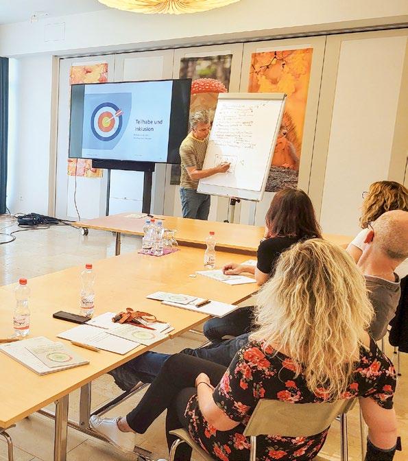 Mitarbeiter:innen an der Schulung zur UN-BRK mit Johannes Schmuck.