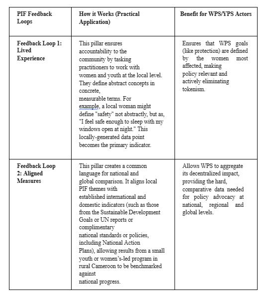 Localization of the donor agenda is critical for the success of any WPS plan of action in the region. The international community should refrain from dictating programs that do not reflect the spirit of local communities Listening sessions with local representatives are essential for scoping and assessment Donor rules for funding, as well as monitoring and evaluation requirements, must be simplified and tailored to the needs of the local context Shift from top-down state feminism to grassroots power-sharing, by requiring that civil society organizations hold co-decision-making authority in drafting and monitoring NAPs, not just advisory roles, and allocating at least 30% of WPS budgets directly to grassroots women-led organizations, bypassing state bottlenecks
