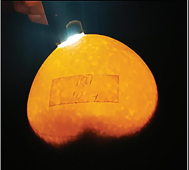 During candling on day 38 of incubation, a definitive uninterrupted division line between the body of the chick and the air space was found (Fig. 1). At this stage, a small area in the division line became interrupted by an isosceles triangular shadow (two equal sides). This is the beak of the chick, changing in intensity due to the forward and backward movements of the head of the chick.
