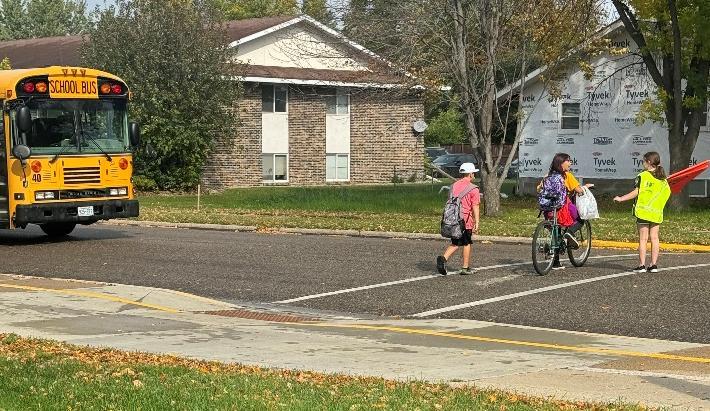 Pedestrians: In the morning students were observed traveling primarily from eastern Alexandria. Many students traveled down 12th Ave toward Lincoln to use the crosswalk which is monitored by student patrol. Students coming from the south would go towards the intersection of Ash, 13th Avenue, and Winona Drive where another set of student patrol monitor the crosswalks. A small group of students was observed walking from the southwest neighborhoods along Ridgeway and Winona Drives. Students coming from the south do not have accessible sidewalks and must walk in the street. There were many students who were dropped off a block from school and were then walked to the front of the school.