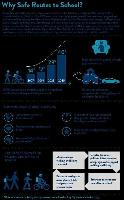 Health for the kids. Doing hikes with the kids. Getting better exercise. Getting to and from school and community activities. Programs for walking in the school district.