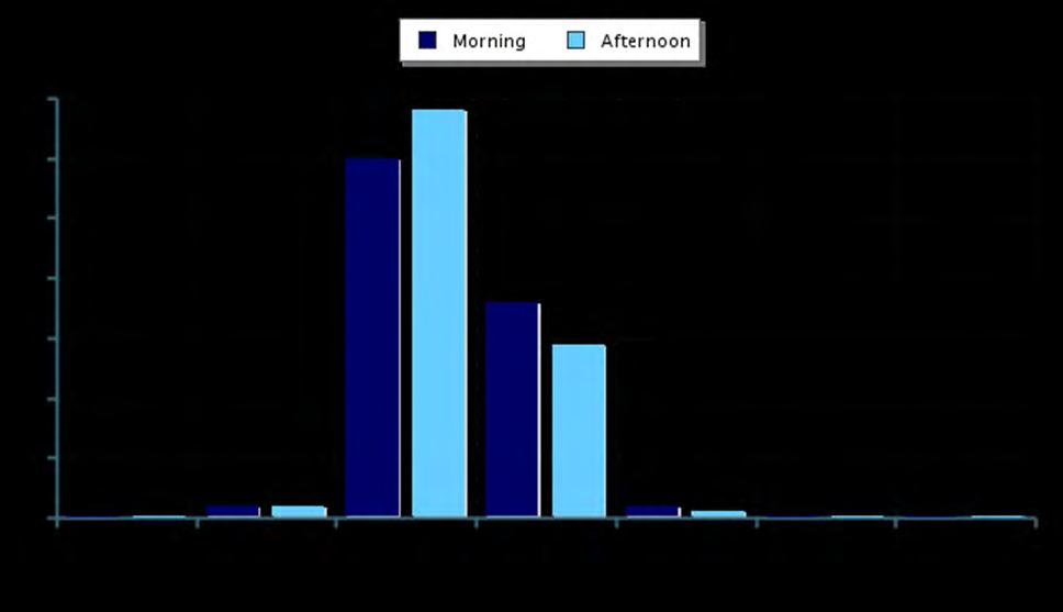 Figure 51: Morning and Afternoon Travel Mode Comparison. Numbers above the bars show percentages of each mode.