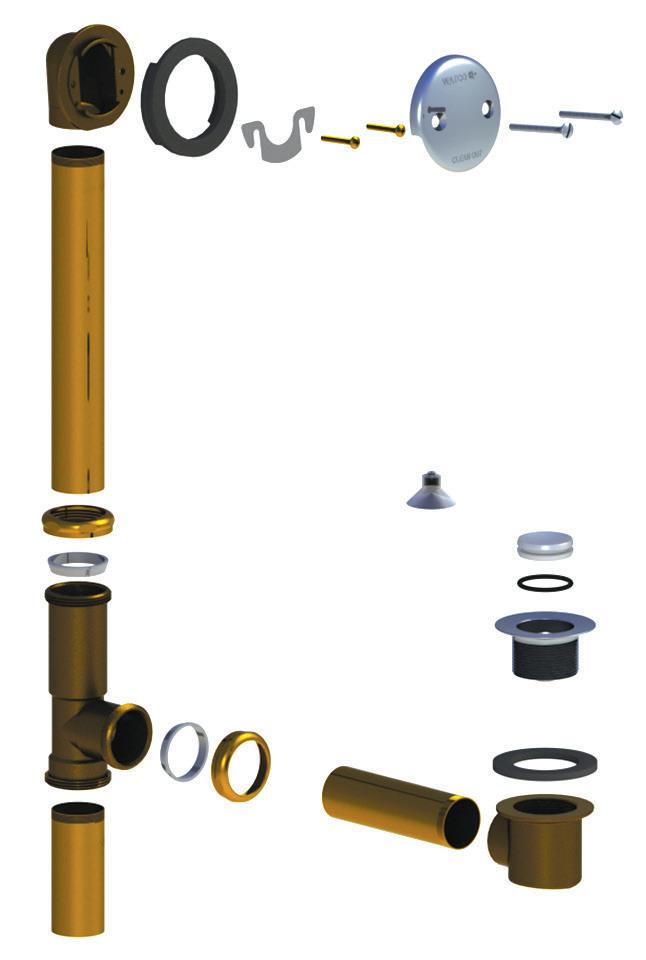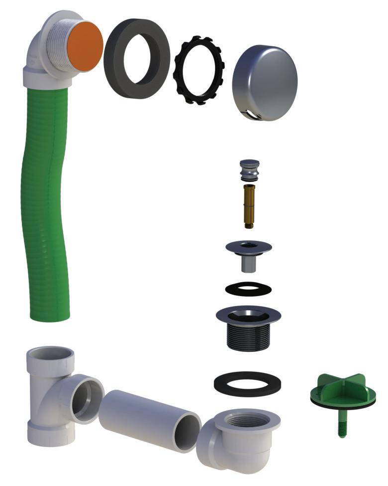 The Overflow end of the Flex tubing is factory-welded. The Tee end of the Flex tubing is loose, designed to be cut and fit in the field, using standard PVC-joining techniques. Chooseeitheracompletebathwaste ORarough-inkitandstopper/faceplatekit.