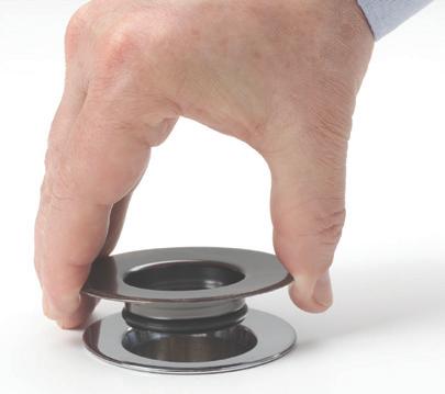 A rounded channel [1] is included in the upper part of the strainer body which is compatible with the rounded edges [2] of the PRESFLO® stopper. When the stopper edge is pressed to open, the rounded edges on both sides fit into the rounded channel in the strainer body, forming an operating axis. This happens no matter where you press down on the circular stopper edge.
