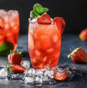 1. Slice the strawberries and muddle together with the simple syrup and honey liqueur.