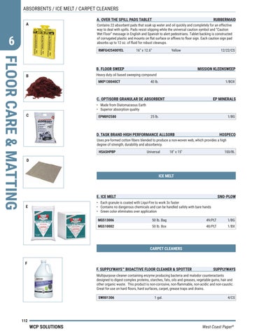 ABSORBENTS / ICE MELT / CARPET CLEANERS A. OVER THE SPILL PADS TABLET