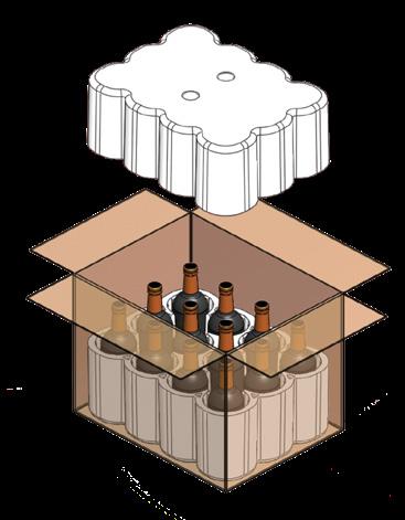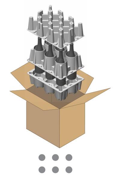 Designed with input from vineyard and wine store managers, this innovative design reduces storage space. The versatile two-sided tray will pack from 3 to 12 bottles.