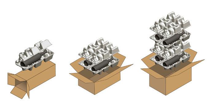 The larger, versatile shipper provides room for today’s bottle shapes, more shock absorbing protection, and a constant carton depth that increases pack-out efficiency.