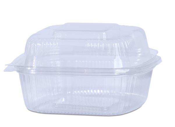 A crystal clear container with large view window to showcase products. Great for bakery or deli, and made with Ingeo biopolymer. BPI certified compostable.
