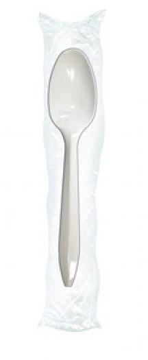 White, medium-weight polypropylene utensils use break-resistant polypropylene for extended use and ideal for use with many foods. Wrapped.