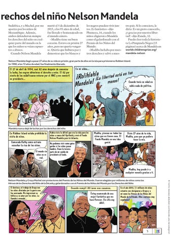 tro país. Si lo conociera, le diría: Es un gusto conocerlo, ¡y gracias por nuestra libertad! –dijo Zanele, 12. Puedes leer toda la historieta La Pimpinela Negra (13 páginas) acerca de Mandela en worlds childrensprize.org/ mandela-nelson