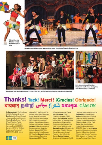 Alegre (PA), SME-Juruti (PA), Projeto Rádio pela Educação/ Rádio Rural de Santarém, SME-São José dos Campos (SP), ONG Circo de Todo Mundo, Samuel Lago, Gilson Schwartz, Christiane Sampaio Burkina Faso: Art Consult et Développement, Malachie Dakuyo Burma: BMWEC, Community Schools Program, Eh Thwa Bor Burundi: Maison Shalom, Maggy Barankitse Cameroon: SOS Villages