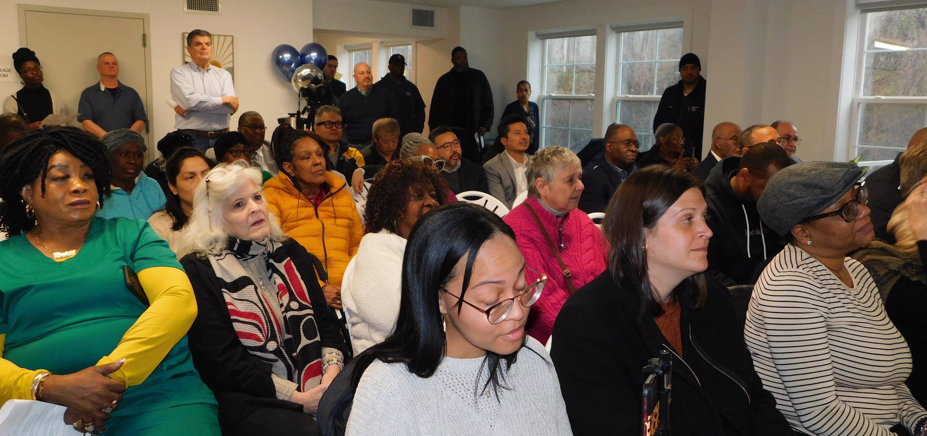 A tour of the building followed the ribbon cutting ceremony and the residents were pleased and proud to show off their new home. Lillie Green said she was happy to be back in the community and settled in as she had been moved several times before the new building was completed. Effie Johnson, who had moved in a few weeks ago, expressed her happiness with her new home. “I’m happy here and it is nice and clean. I really like it here!” Dorothy Jenkins, who recently moved from Tarryhill Apartments, just a short distance away, was excited about the spacious rooms and the fact that she did not have to contend with stairs. With a big smile on her face, she said “I love it. It’s really beautiful.” She was originally a Greenburgh resident but had lived in White Plains for a while. Twelve of the original tenants who had been displaced and were in temporary housing are now residents of the new building; eight more from the original group who resided in the scattered sites are deceased. The apartments are brightly lit and spacious and are equipped with energy efficient electric appliances. They are also designed for wheelchair use and include a roll-in shower. Shared amenities include a first-floor laundry room, computer room, community room, beautiful large