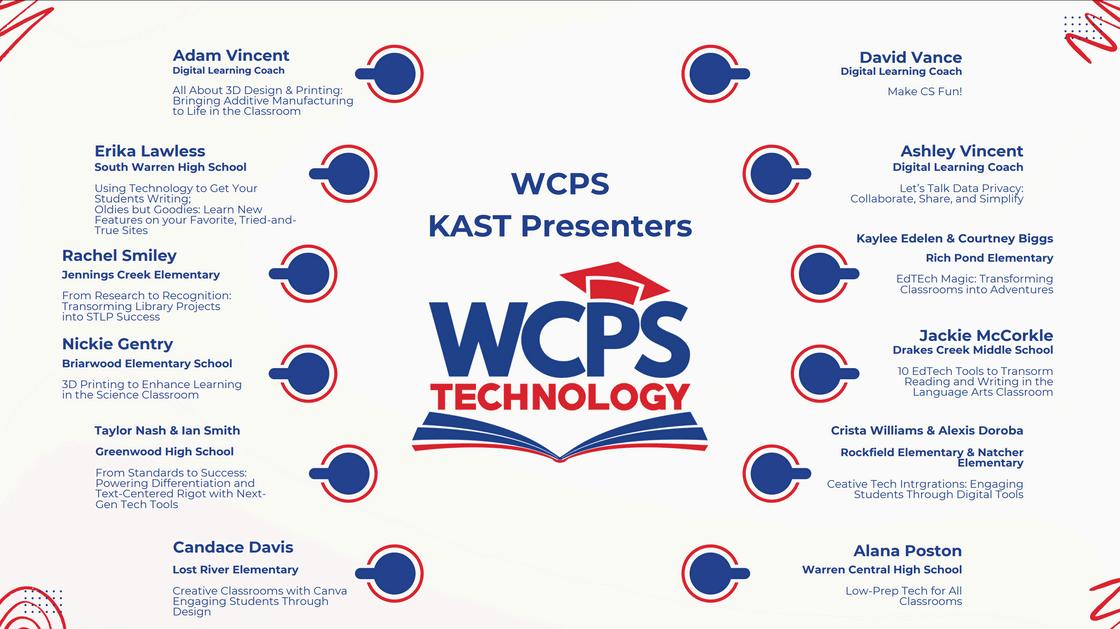 Congratulations to our WCPS presenters at the Kentucky Association for School Technology (KAST) state conference. The conference will be held March 11-13, 2026 at the Kentucky International Convention Center in Louisville.