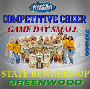 Congratulations to Greenwood High School cheer on their runner-up finish in the Game Day Small Division of the KHSAA 20252026 Competitive Cheer State Championship presented by UK HealthCare.