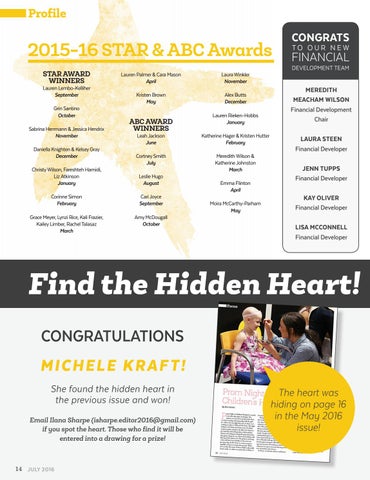 Find the Hidden Heart! CONGRATULATIONS MICHELE KR AFT! She found the hidden heart in the previous issue and won! Email Ilana Sharpe (isharpe.editor2016@gmail.com) if you spot the heart. Those who find it will be entered into a drawing for a prize!