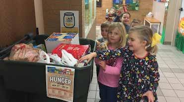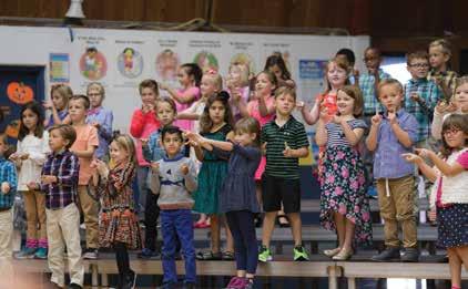 With November came cooler weather and a time for reflecting on what has been, looking forward to adventures ahead, and giving thanks for it all! Seventh graders delved into nature at the Bartlett Arboretum on November 3. Second graders learned about Native American culture, history, and customs, and supplemented their experiences with personal art projects from their favorite selected tribes. Early Childhood kids enjoyed time with new friends, firefighters from WFD Station 18, as part of a yearlong community involvement program. On November 10, the 1st Grade Kindness Crew capped off a cold week by spreading some cheer and greeting students and parents on their way to classes. Fourth grade students proudly presented their “Windows and Mirrors” Heritage Projects on November 16 after researching and studying their own family heritage. That same week, Early Childhood students celebrated their elders and welcomed grandparents to campus for a fun-filled day, and, of course, the “Turkey Tango!” Former faculty member Robin Macy even joined in on the Early Childhood Thanksgiving Program to share a song about “the power of one” (see next page). Lower, Middle, and Upper School band and vocal students gathered the next week with friends and family for the Annual Thanksgiving Concert in the Upper School Gym. “The Battle Hymn of the Republic” capped the concert to kick off what was sure to be a wonderful holiday weekend! Alumni came back to WCS the Friday after Thanksgiving to “work off the turkey” and play hoops against the current Collegiate Spartan basketball teams. Win or lose, Spartans young and old enjoyed some exercise and fun with one another.