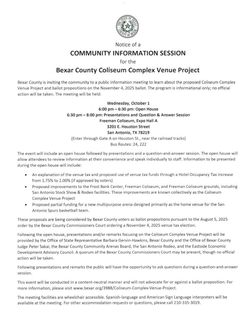 Please visit the Bexar County Elections webpage for additional information regarding the Nov. 4th election, including voting locations at: