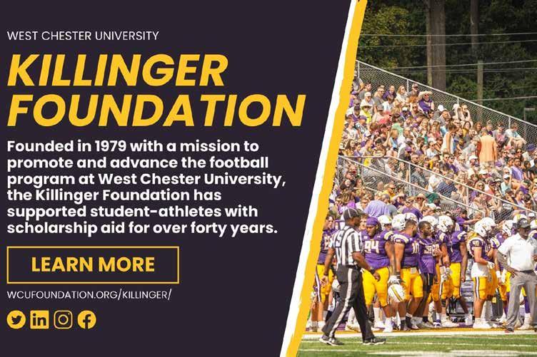 I want to express my appreciation to the coaching staff and to our student athletes’ families and friends for bringing out the best in each athlete. To every Golden Rams fan, my thanks for your enthusiastic support of West Chester University athletics! Please continue to enjoy the exciting competition throughout the season— and share the good news about Golden Rams football with anyone who hasn’t had the thrill of being there when the players, cheerleaders, and marching band take the field.