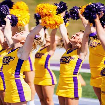 From late August through early-to-mid March each school year, West Chester University’s cheerleaders are front and center at all Golden Rams football games in the fall and both men’s and women’s basketball games in the winter. Additionally, West Chester University’s cheerleaders have traveled to Orlando, Fla., and the Wide World of Sports in January to compete in the UCA Nationals. The Golden Rams Cheer Squad placed among the top five at UCA Nationals in each of the past four years, including a national championship effort last winter and a runner-up performance in 2023.