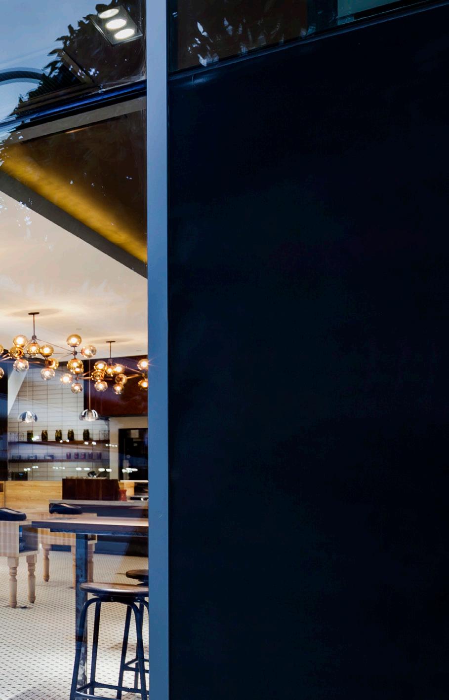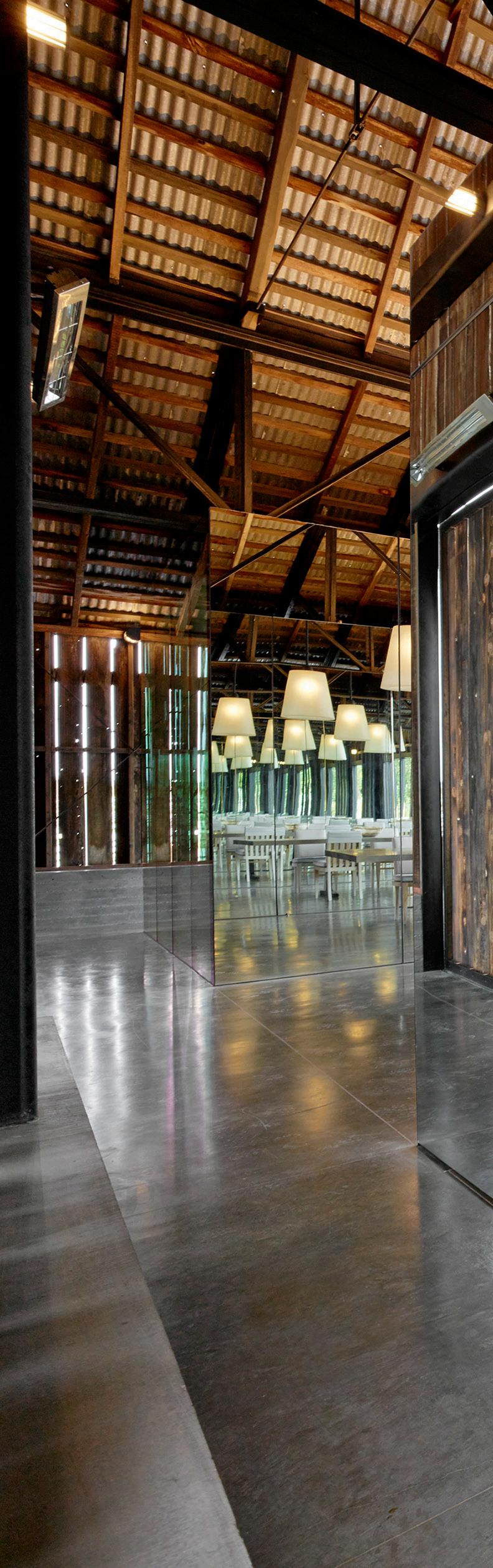 The balance of rich textures combined with the minimalism of walls and ceilings in this restaurant space inspires new experiences through shifting perspectives.