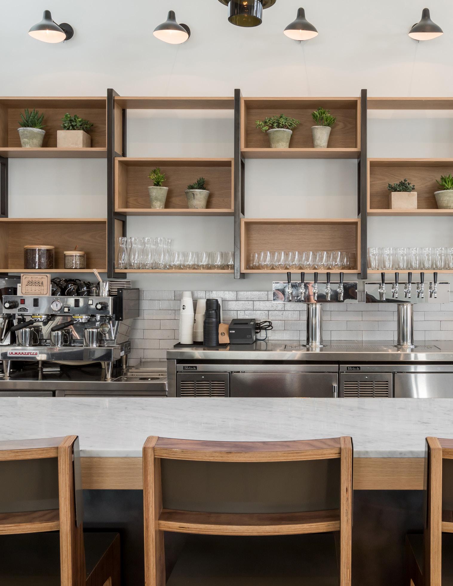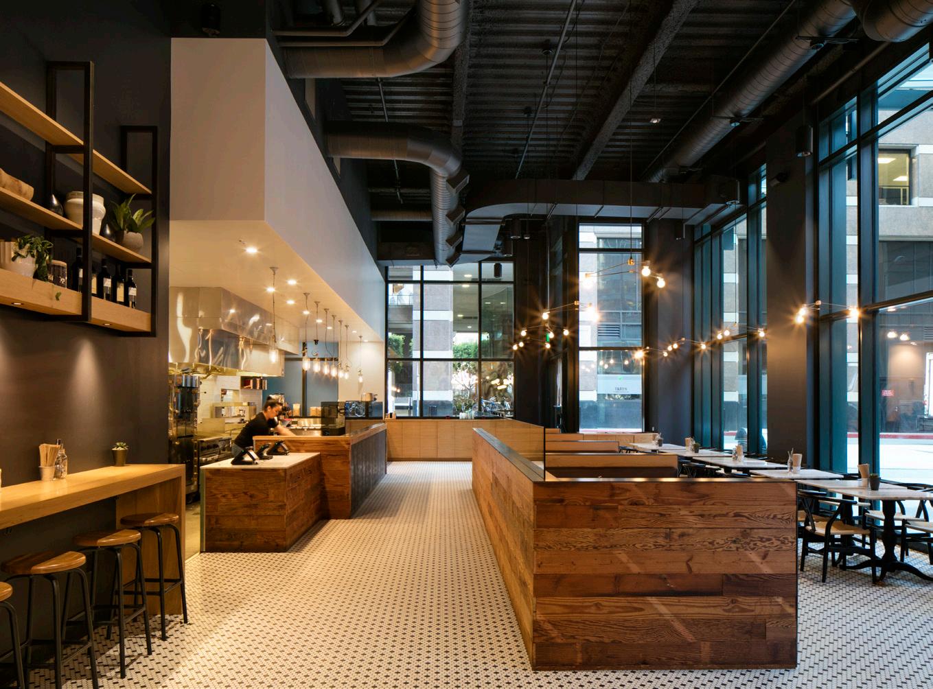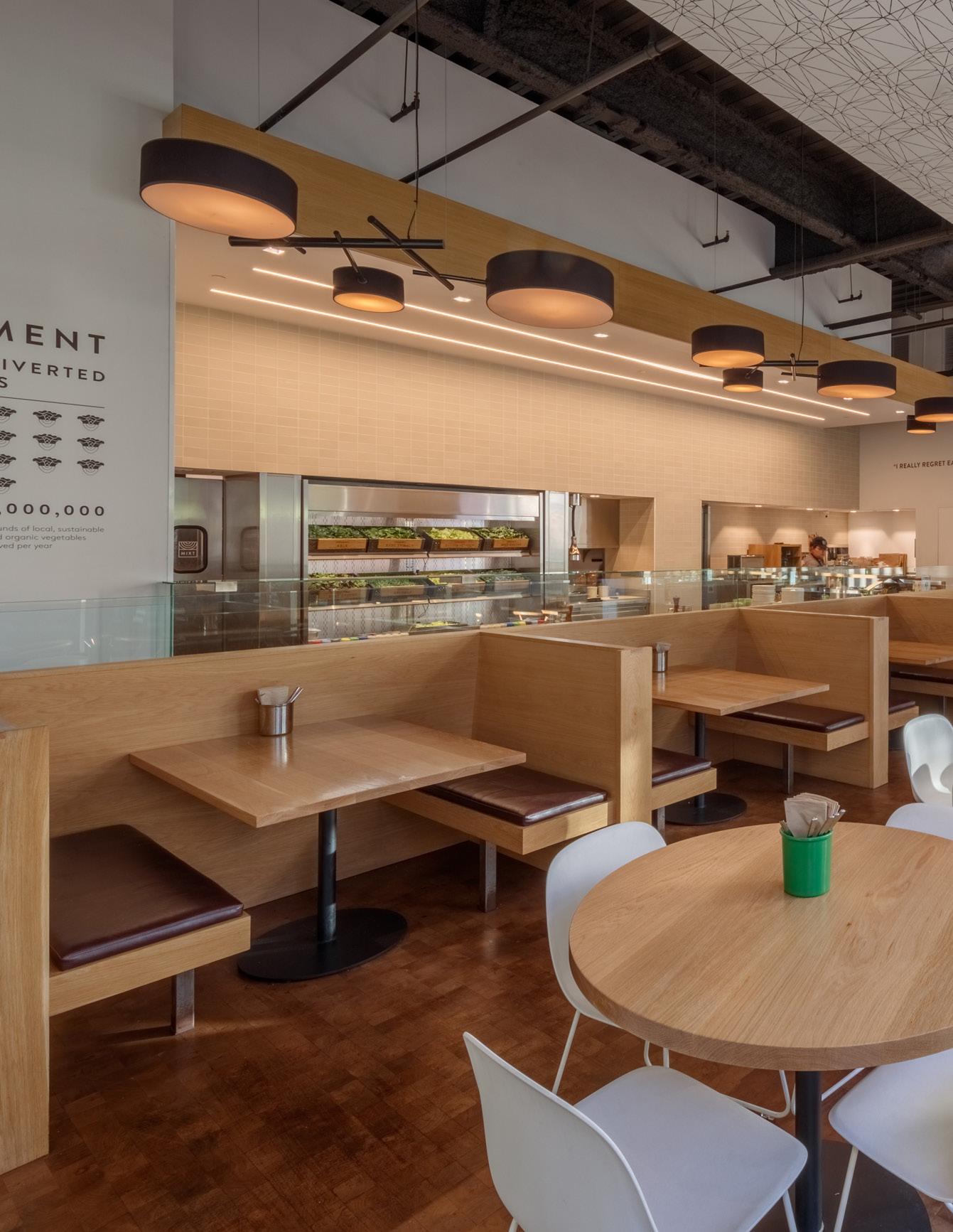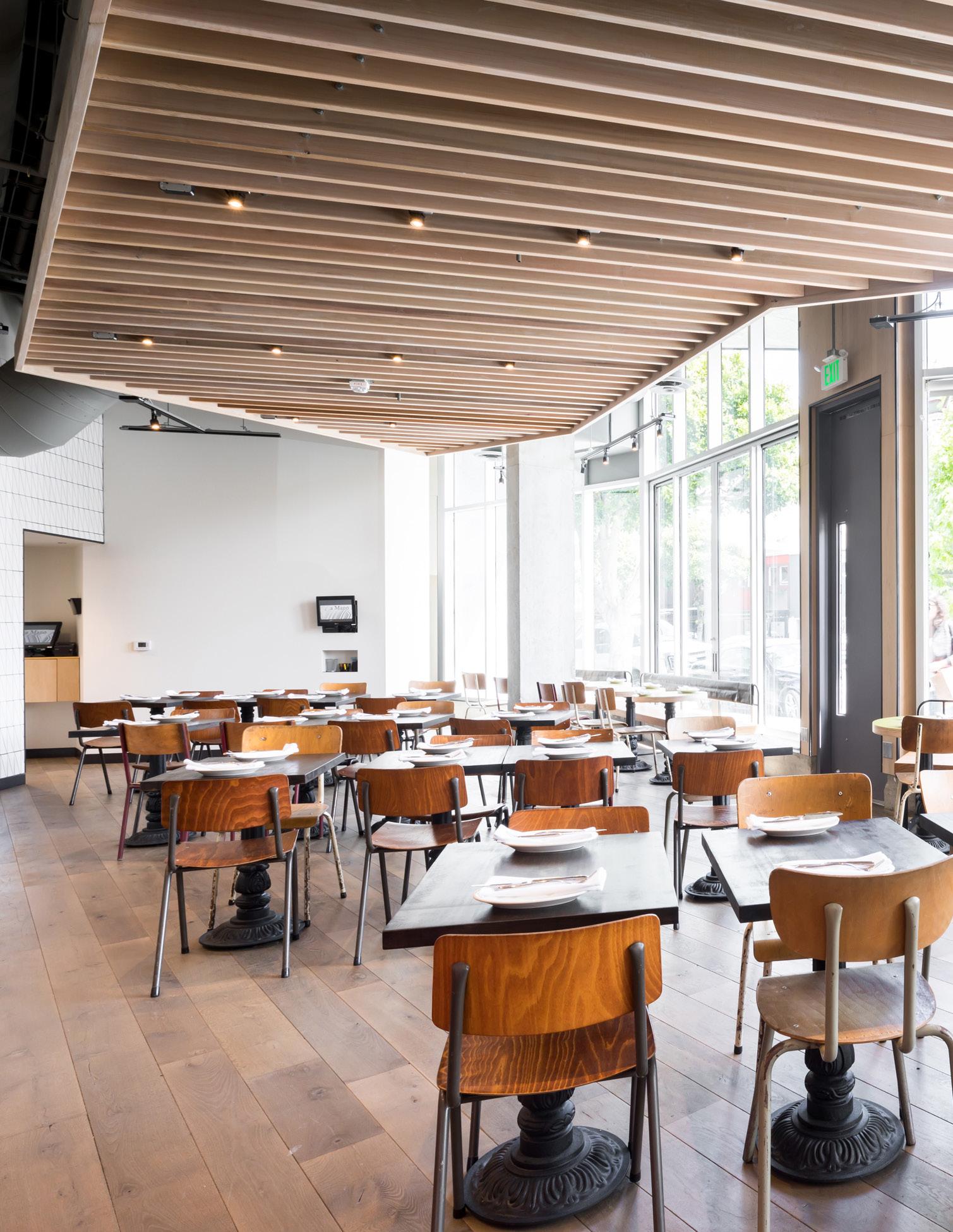 This restaurant space is balanced through a refined selection of complimentary colors, textures and materials.