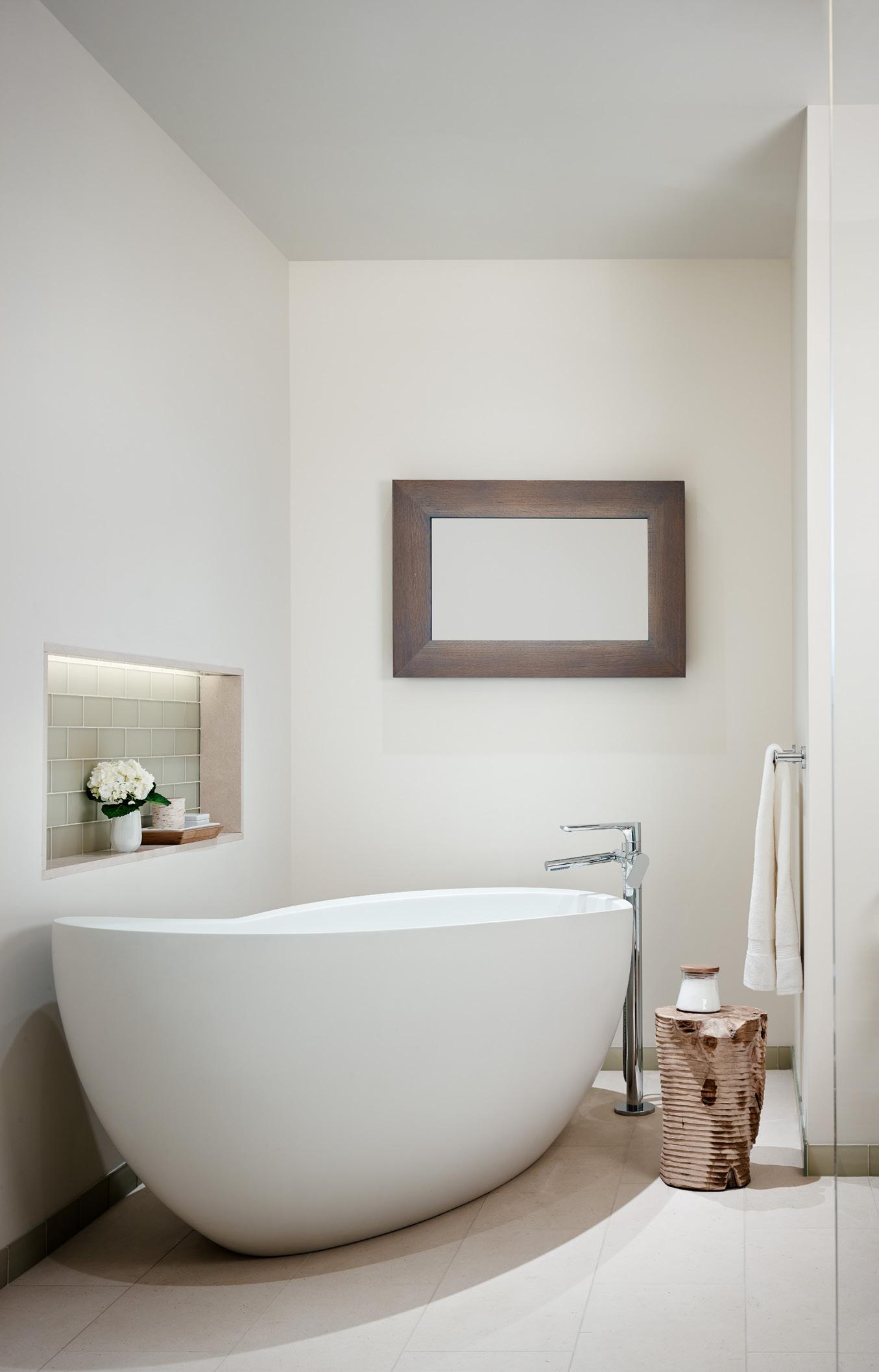 The design intent for this space was to create a soothing, spa-like environment. Conceptual clarity was achieved through the calm, organic color palette & soft indirect light.
