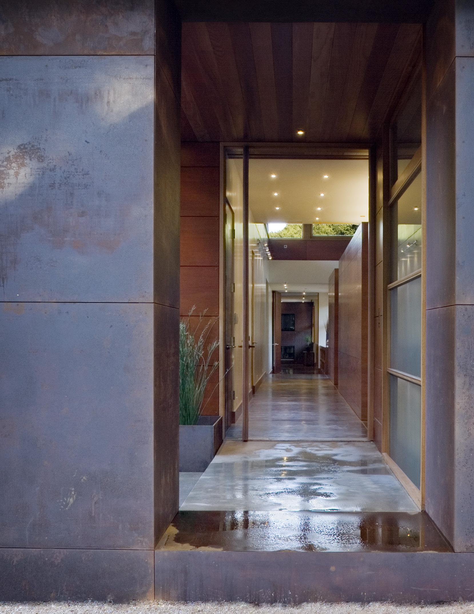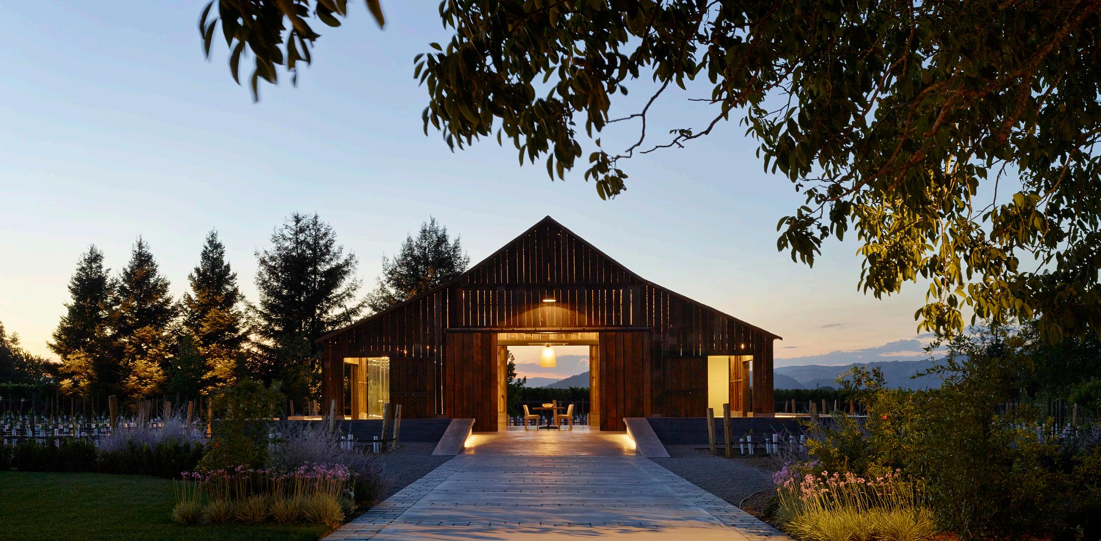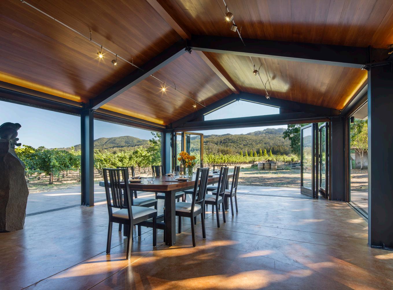 The big move in this wine cave entrance is, in a sense, the design itself; a prominent cube nestled into the hillside highlighting the point at which one enters the cave.