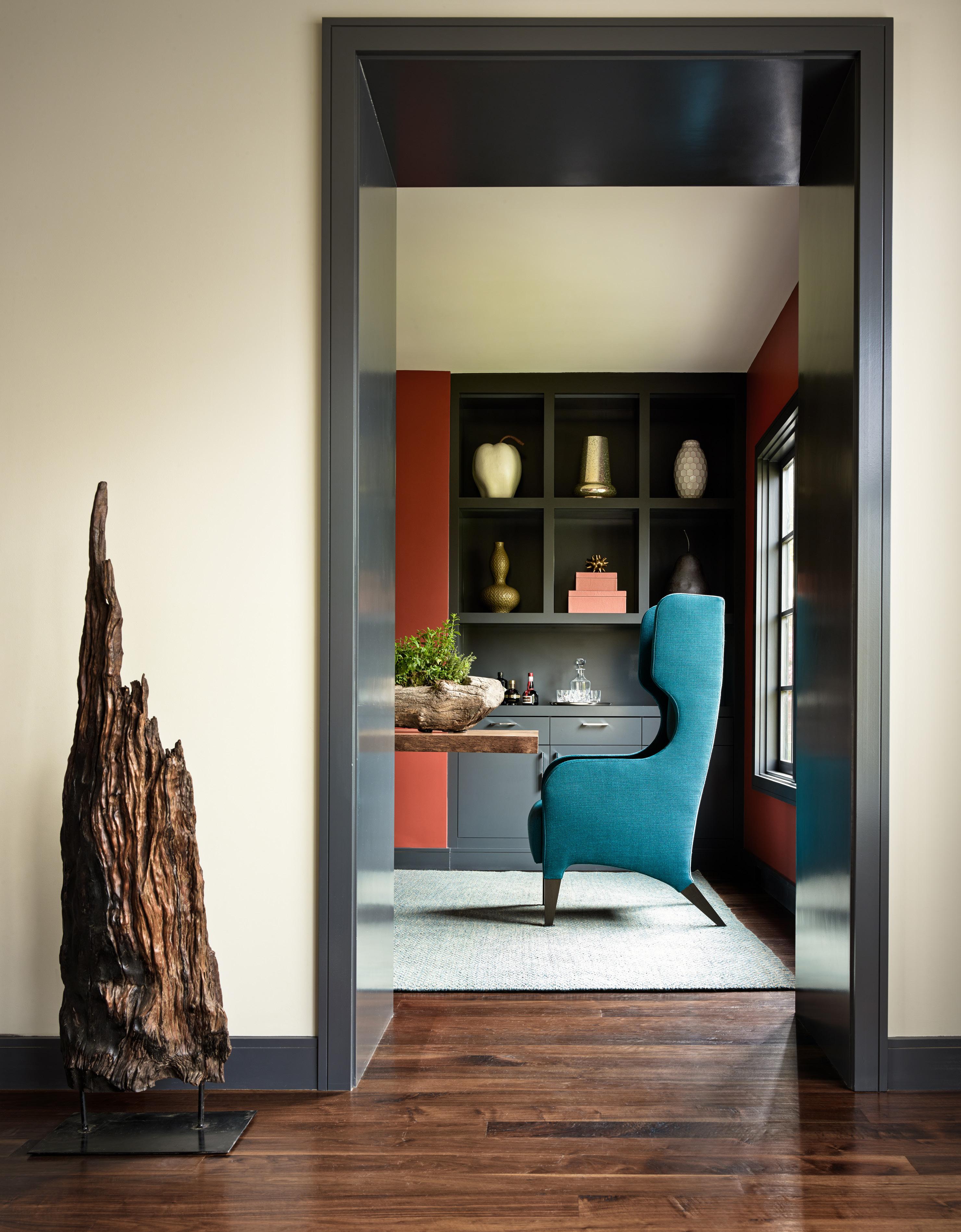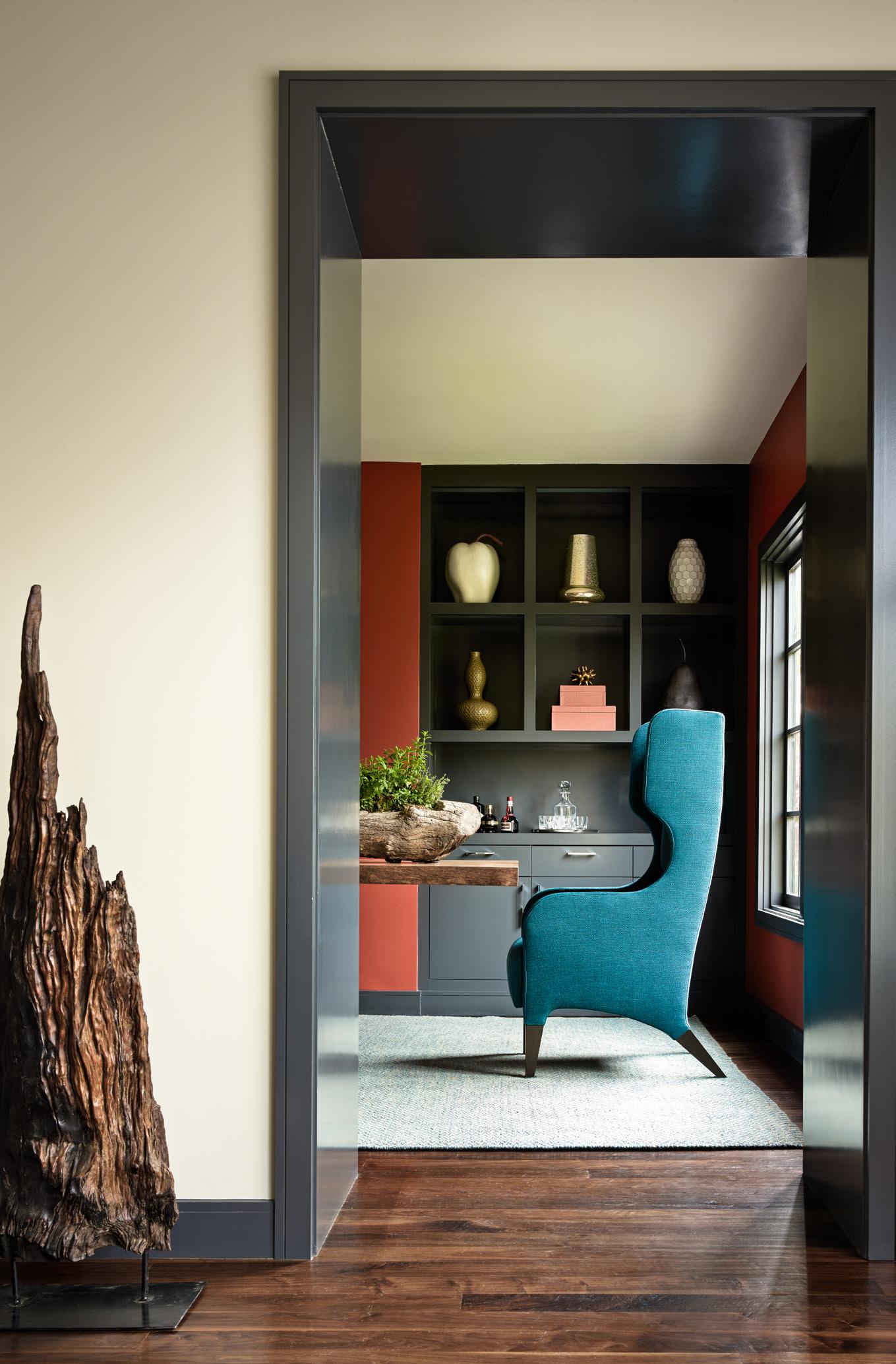 Light fixtures, millwork, framed openings and wall detailing are all carefully aligned in these spaces so that they form a perception of harmony and balance.