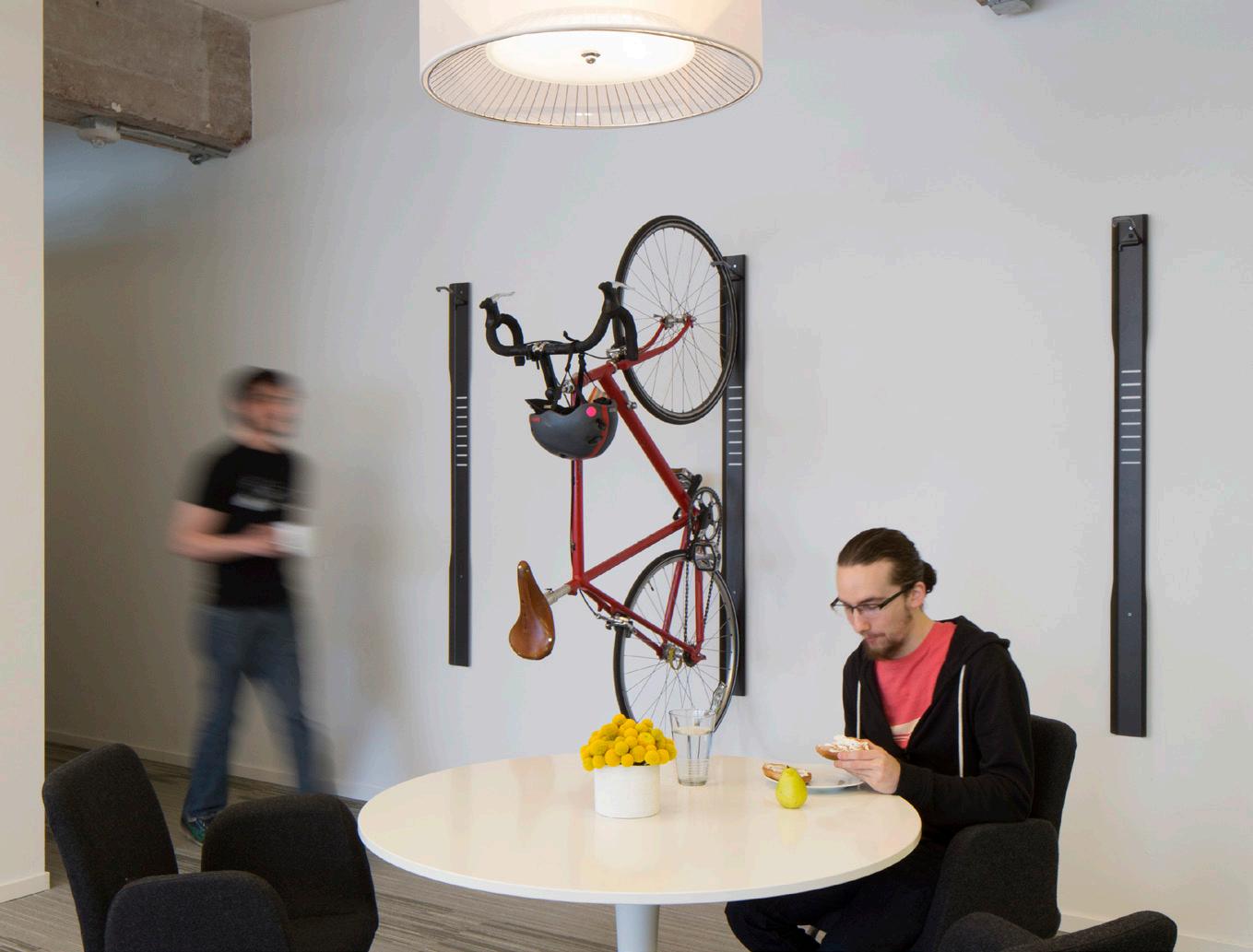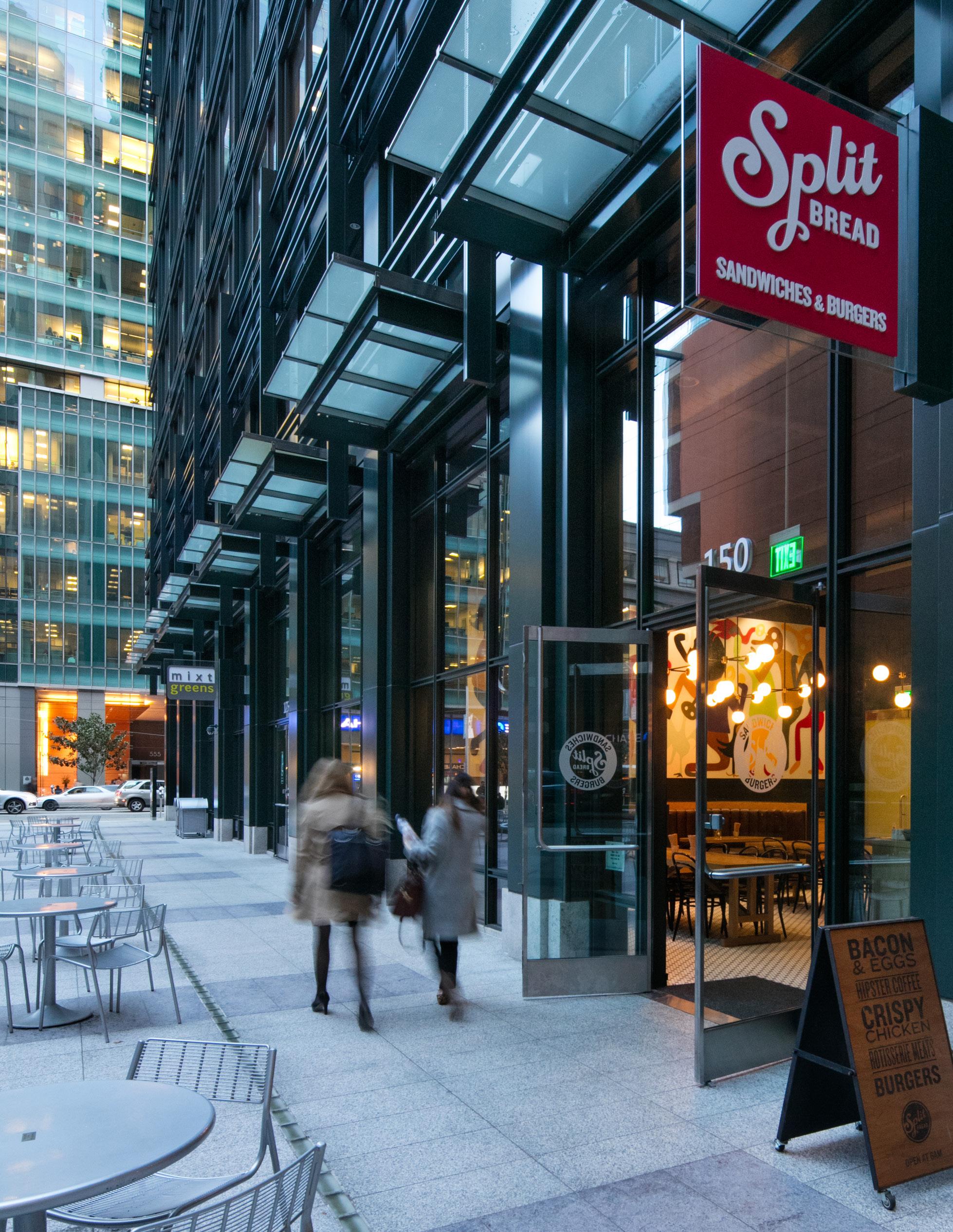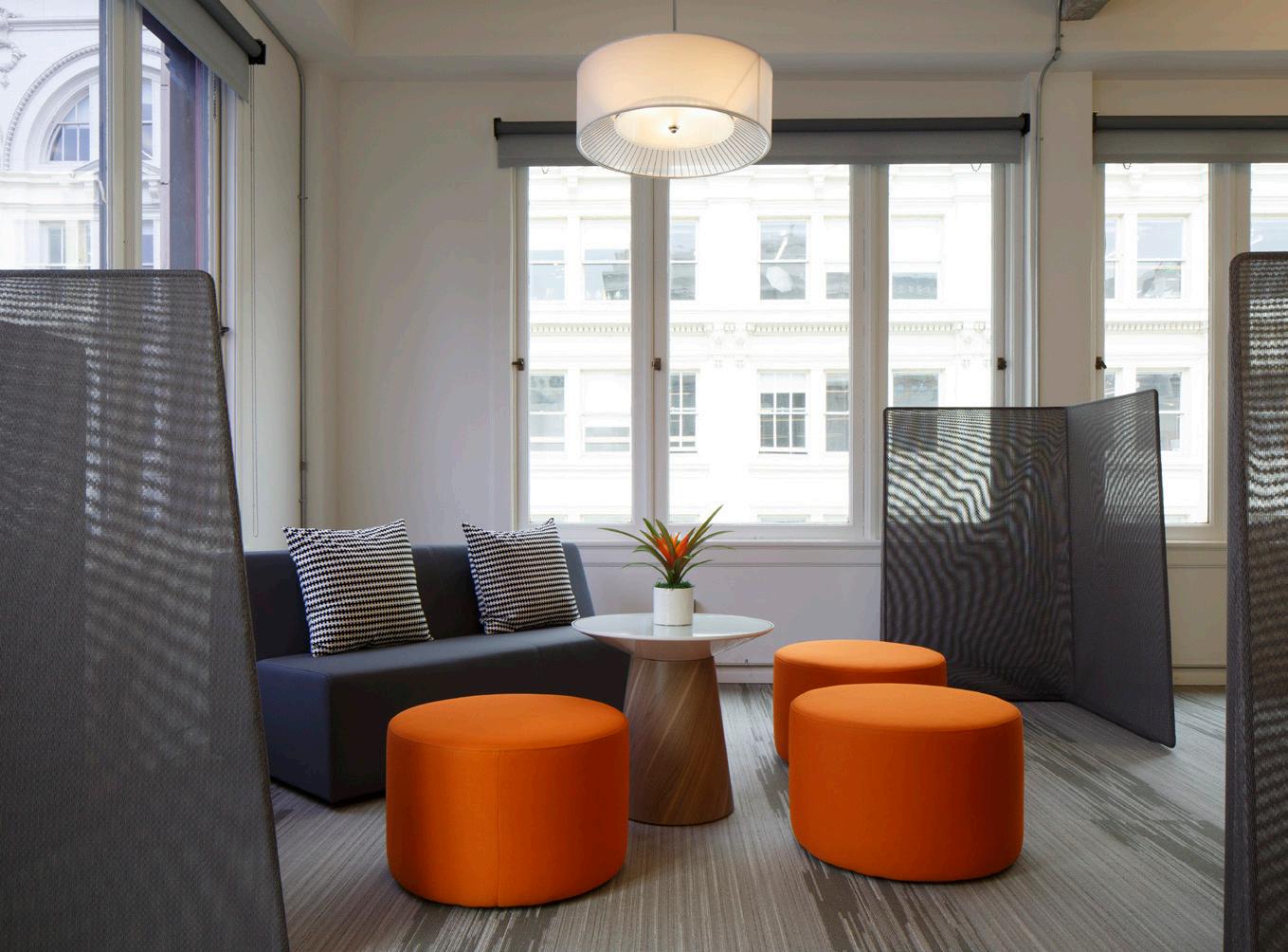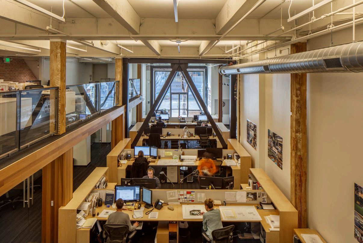 The interplay of shapes and forms begins at the storefront of this building and continues through the space creating interesting compositions from every angle.