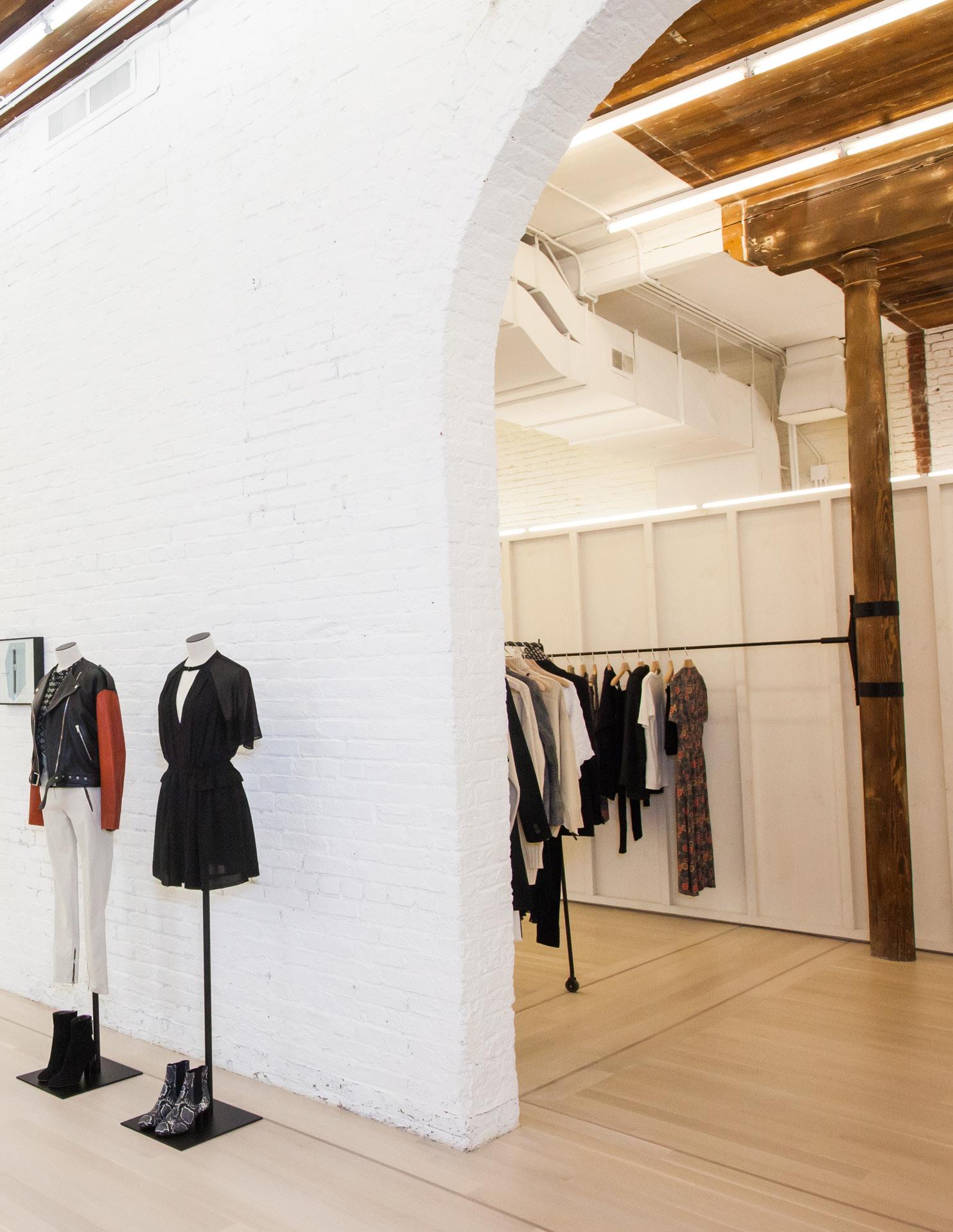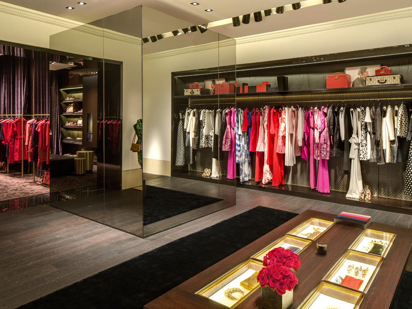 The judicious positioning of elements in this retail design articulates a well-proportioned space and conveys a sense of elegance in the brand.