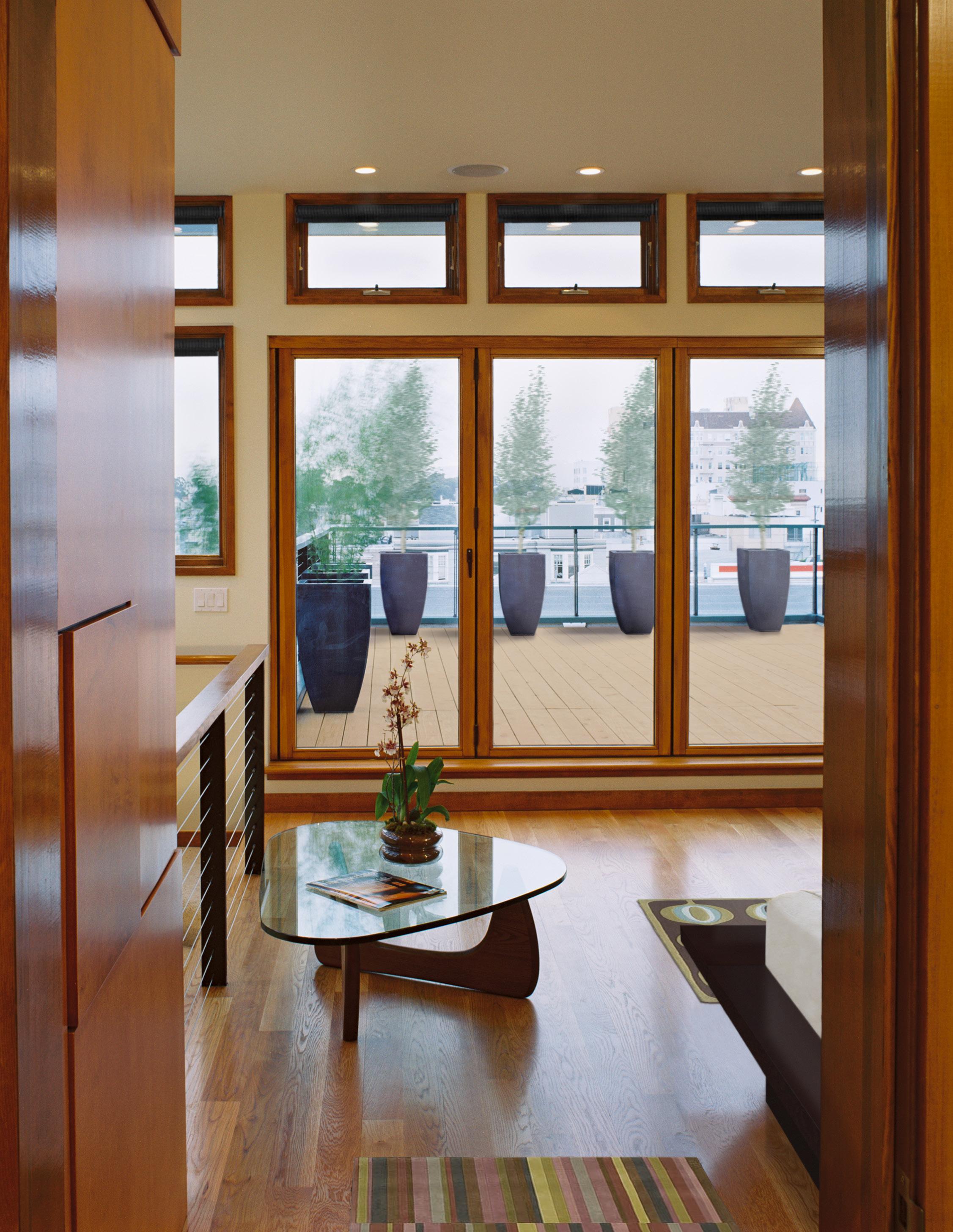 When a space is predominantly horizontal the non-horiziontal elements assume greater significance, and each can emphasize the other for the betterment of the whole.