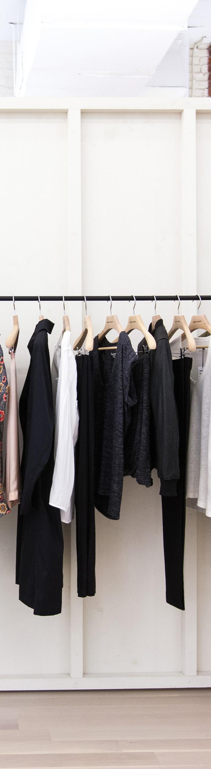 This minimalist room is transformed through the addition of an elegantly detailed fixture and its associated merchandise. Its well-considered placement communicates a sense of dynamism, refinement and sophistication to the space.