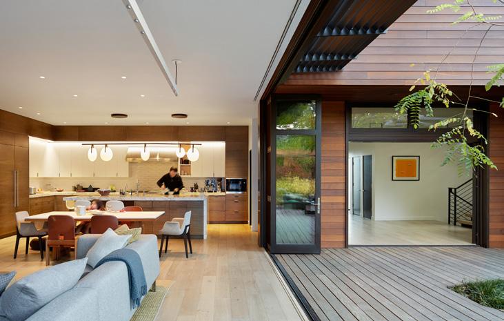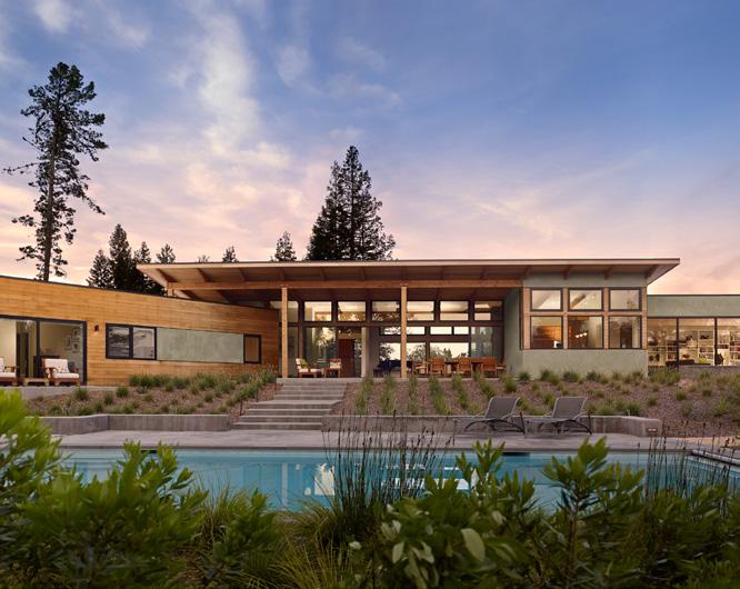 emphasized the concept of bringing the outdoors in, allowing the building to connect to its natural environment. On the exterior, wood siding and integral color stucco form a natural material palette that accentuates the horizon and immerses itself in the landscape surrounding it.