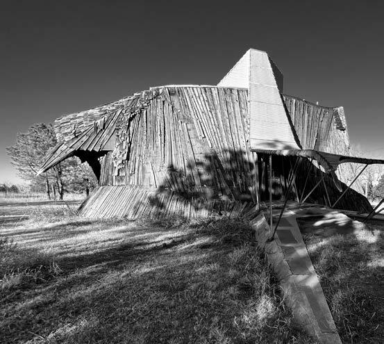 Designed by Herb Greene in 1961, its sculptural form captures the motion of wind and grass, translating the language of the plains into wood, stone, and light. What began as an experimental home has become an emblem of imagination rooted in place.