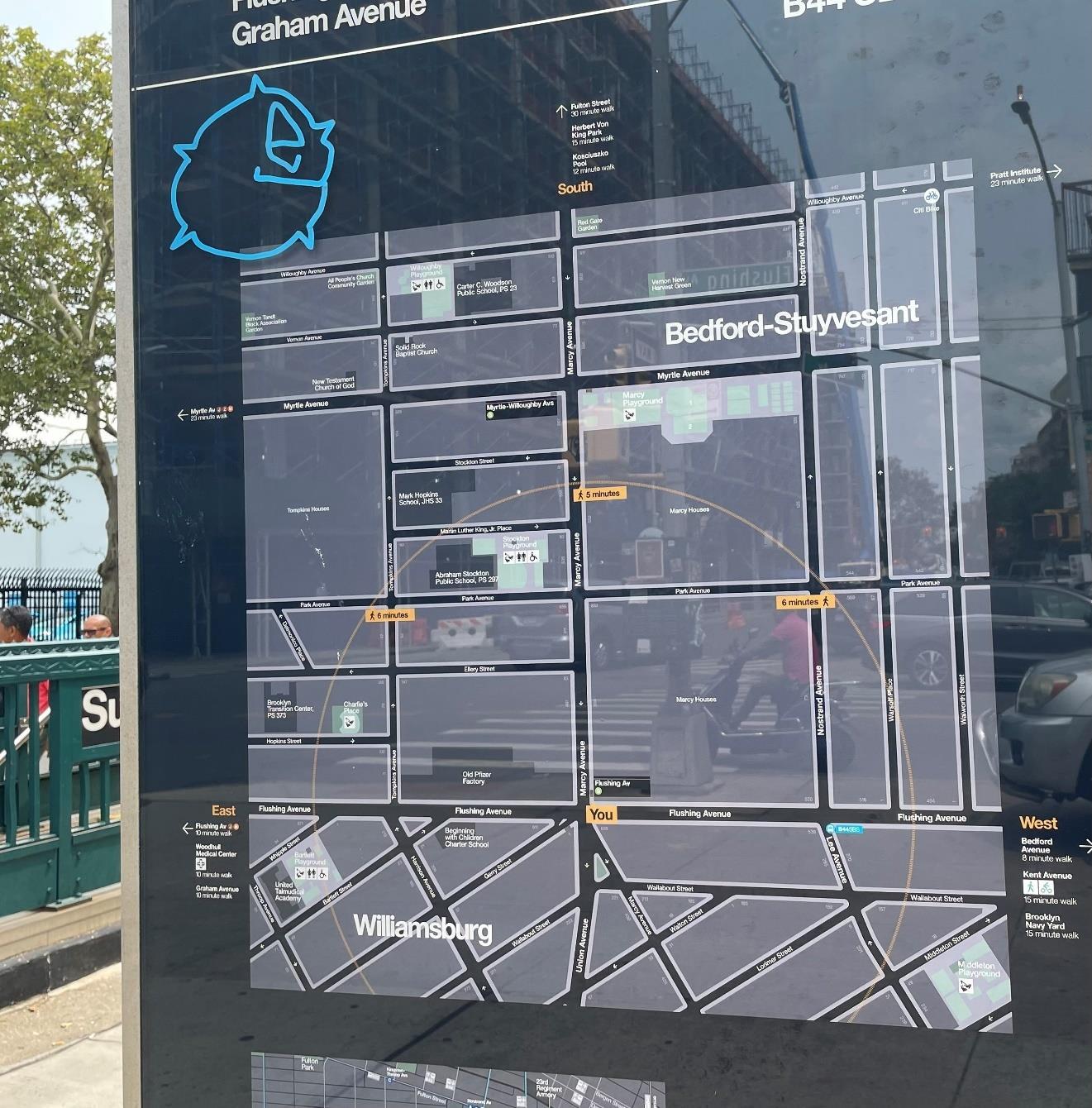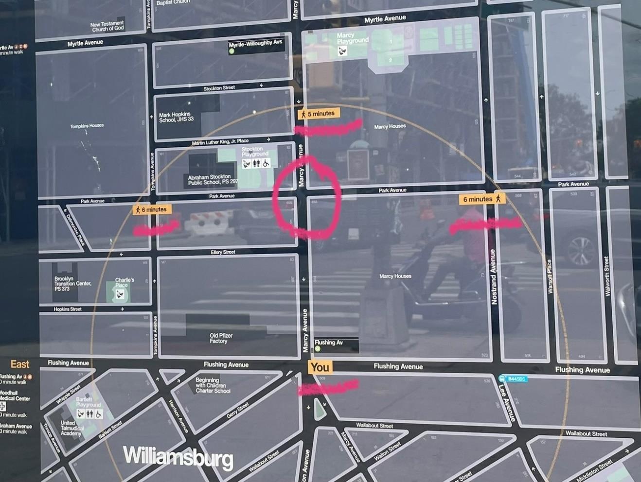 This Heaven is on the border of the sidewalk on Bushwick Avenue, in between Melrose&Arion,yetmuch-muchclosertothecornerwithArionStreet.(Phototaken by Team A at the 11/13/22 Special Edition & exchanged for their next clue, allowingthemtoadvance/tracearouteonthemap,justasyou’lldo!)