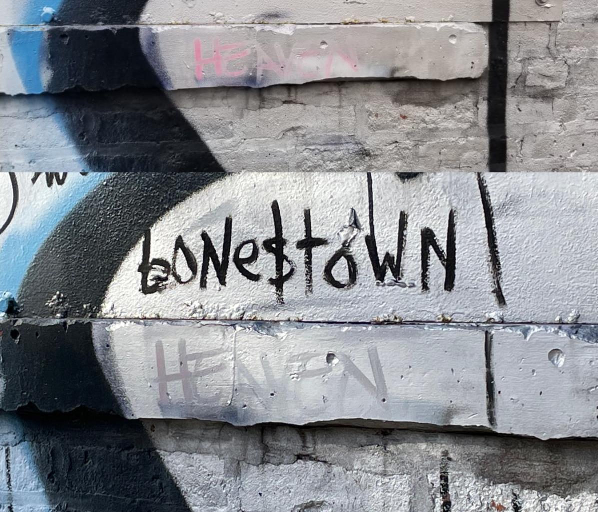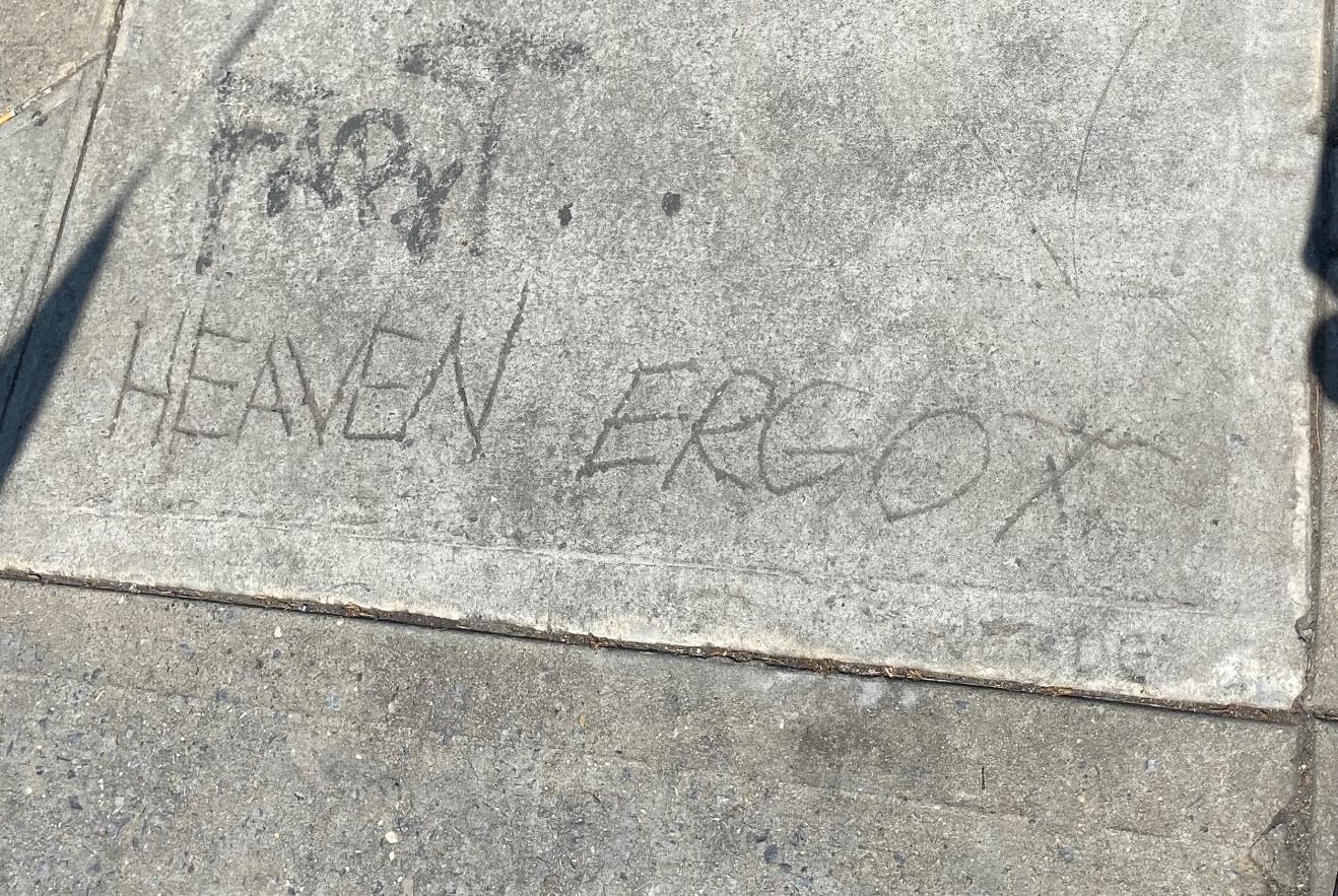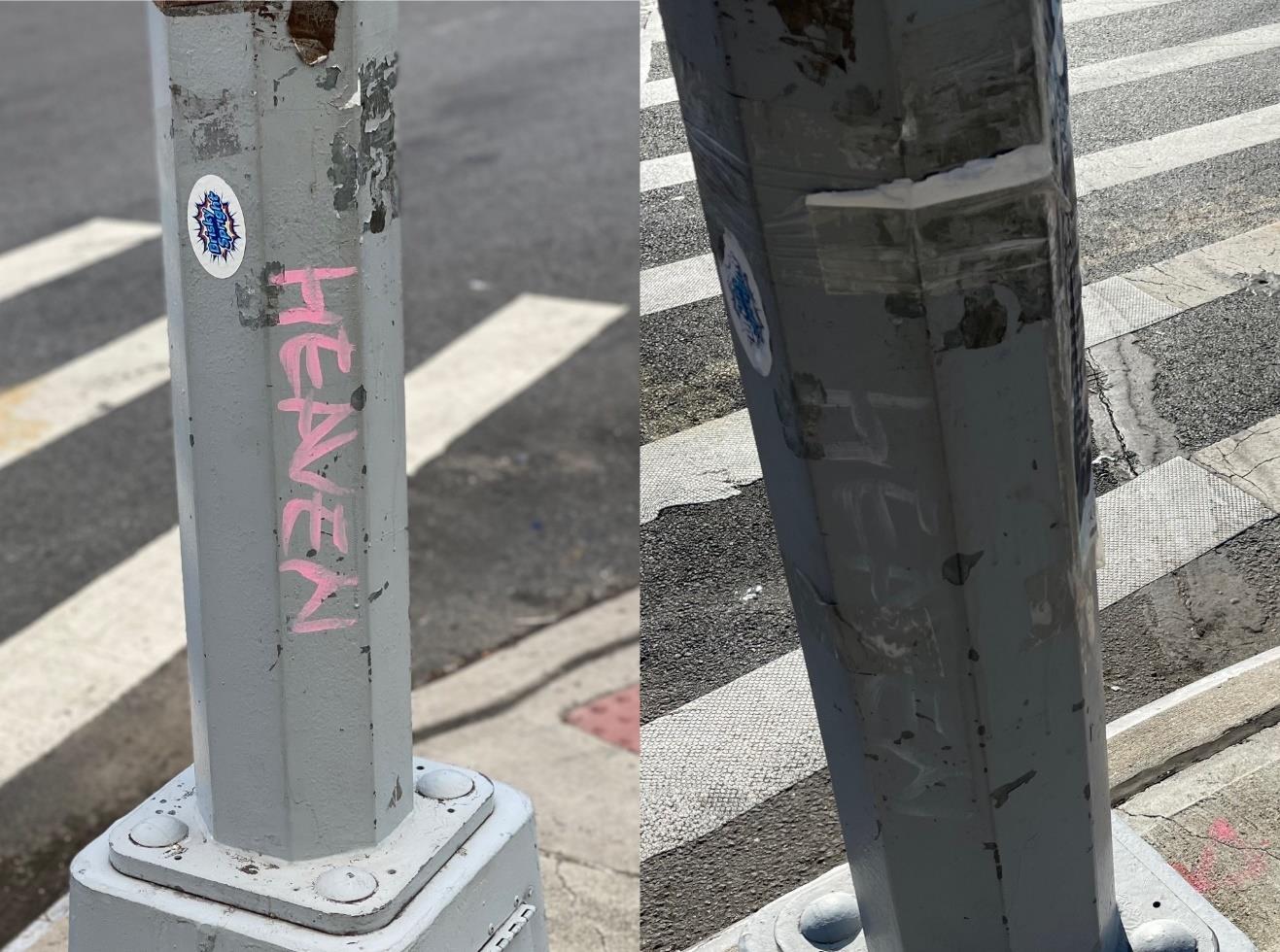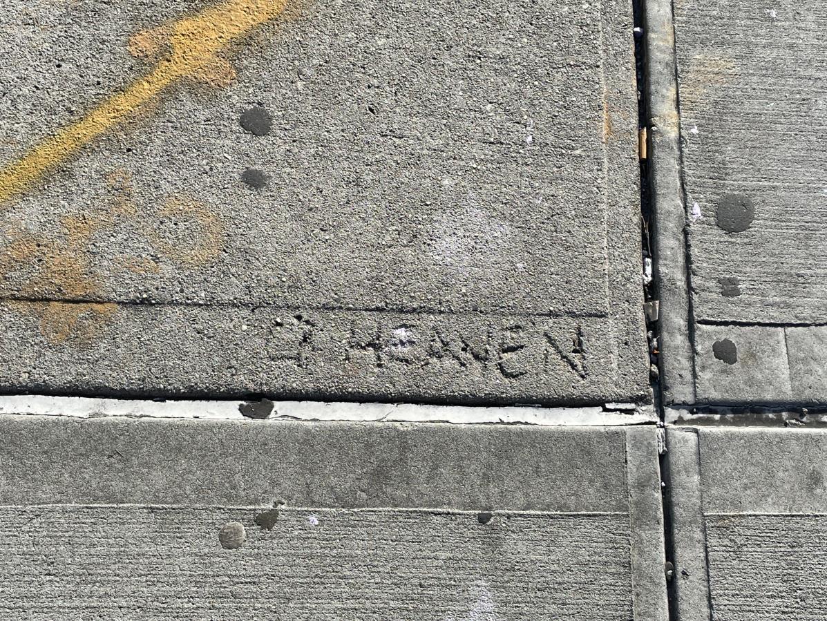 The photograph on the left shows two handwritten Heaven (as one walks from BelvideretowardsLocust),seenon11/13/22;whilethepictureontherightshows themon08/31/23.MaybetheHeavenPersonshoulddoatouchup!