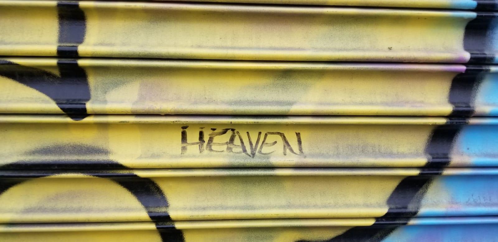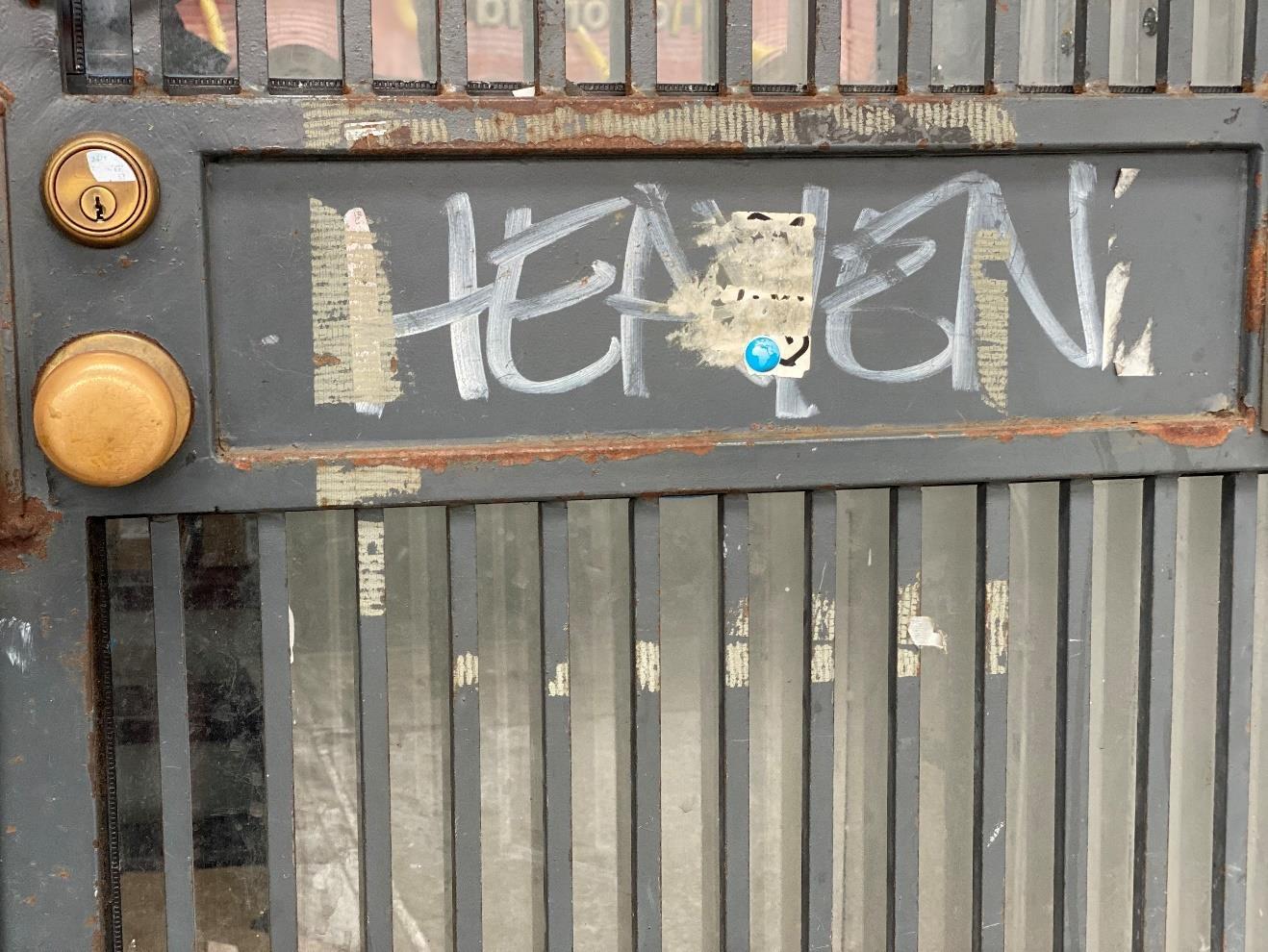 Nowyoushouldfind four Heaven written onthewallbehindyou.