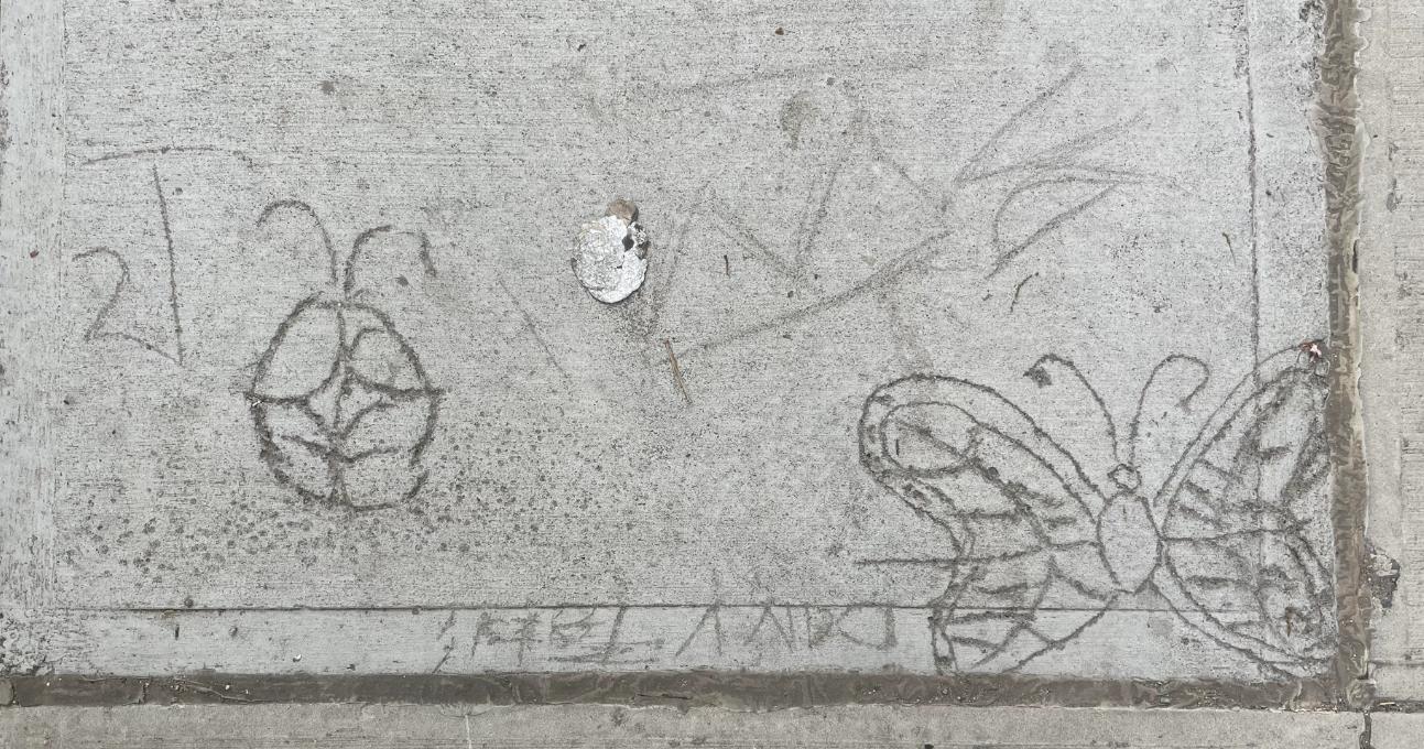 Bonus from Street - NexttotheIntersectionoftheAnimals,a butterfly &and anotherbughavebeencarvedinconcrete.